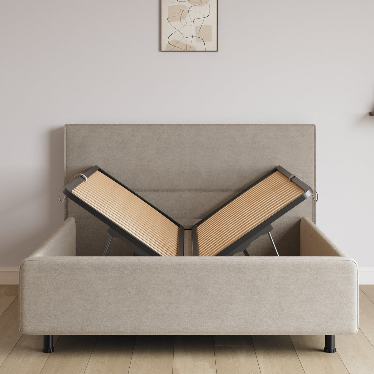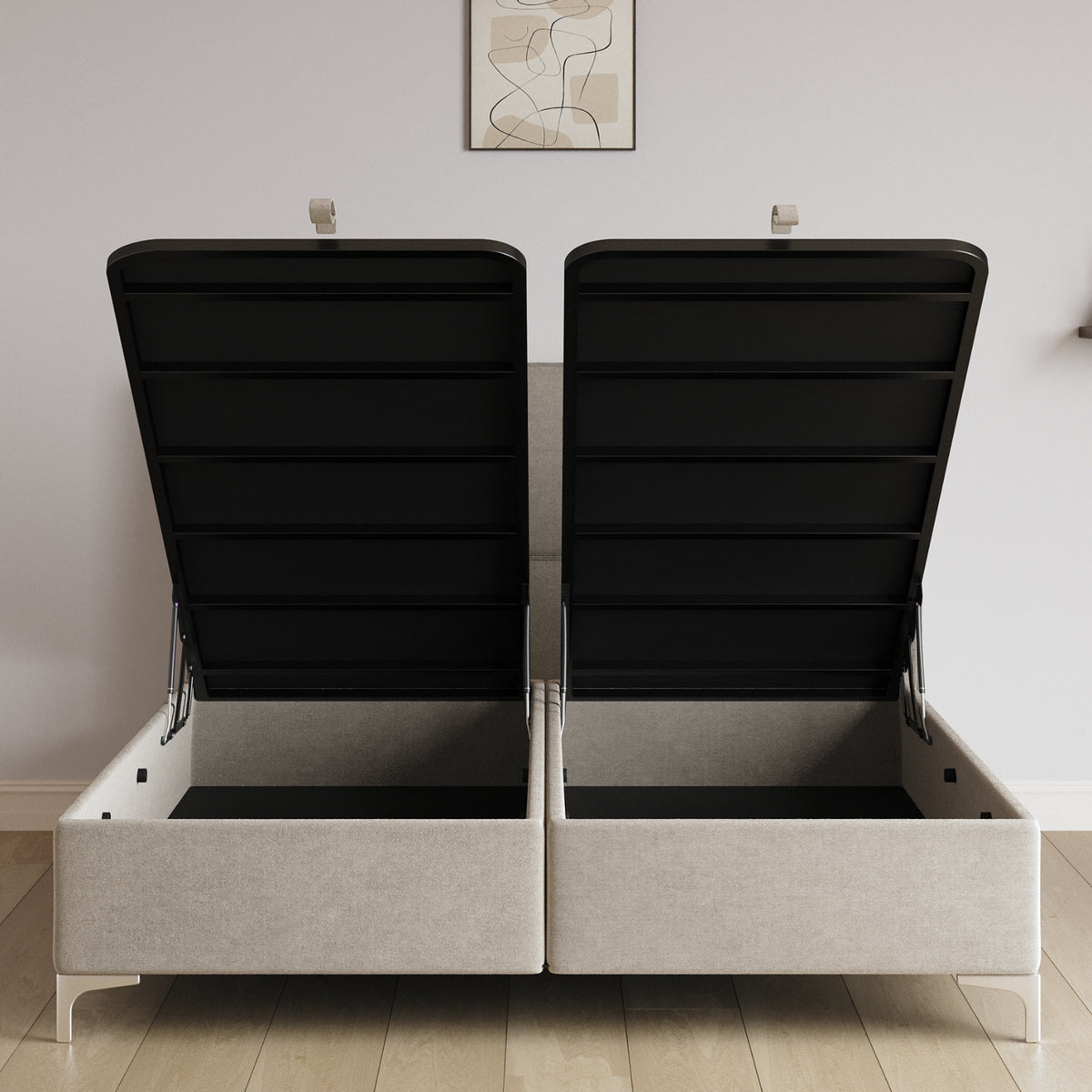 Das Line Stauraum Pro verbindet das charakteristische Rillen-Kopfteil mit dem praktischsten Stauraum-System: seitliche Öffnung. Kein Anheben der Matratze – einfach öffnen und rausholen. Die vertikalen Linien geben dem Bett dabei seinen unverwechselbaren Look.
