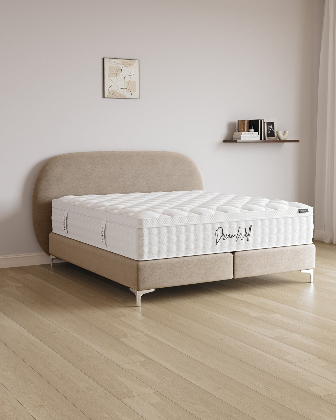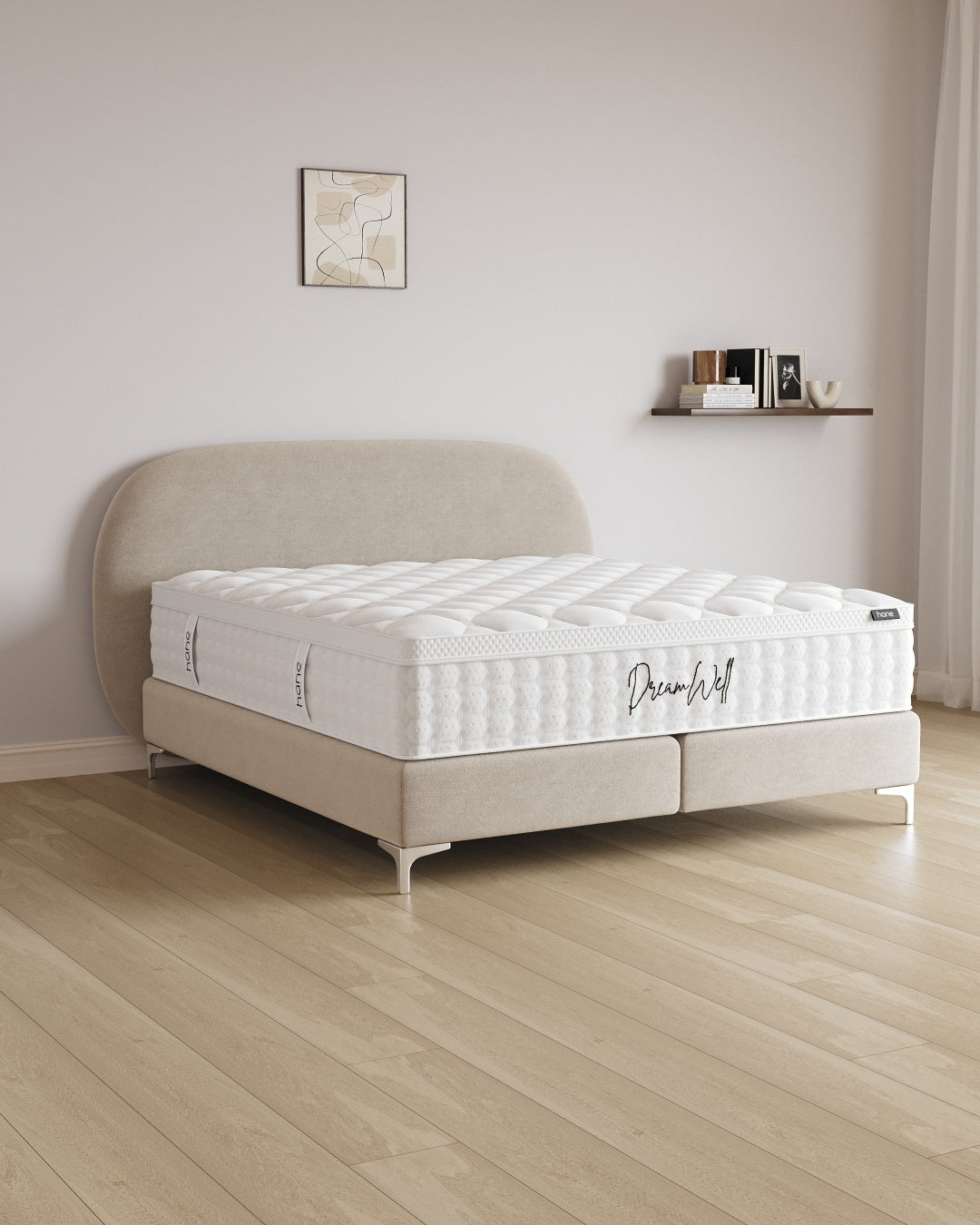 Die DreamWell Prestige verbindet luxuriöse Materialien mit durchdachtem Komfort – für ein ruhiges, tiefes Schlafgefühl ohne Kompromisse.