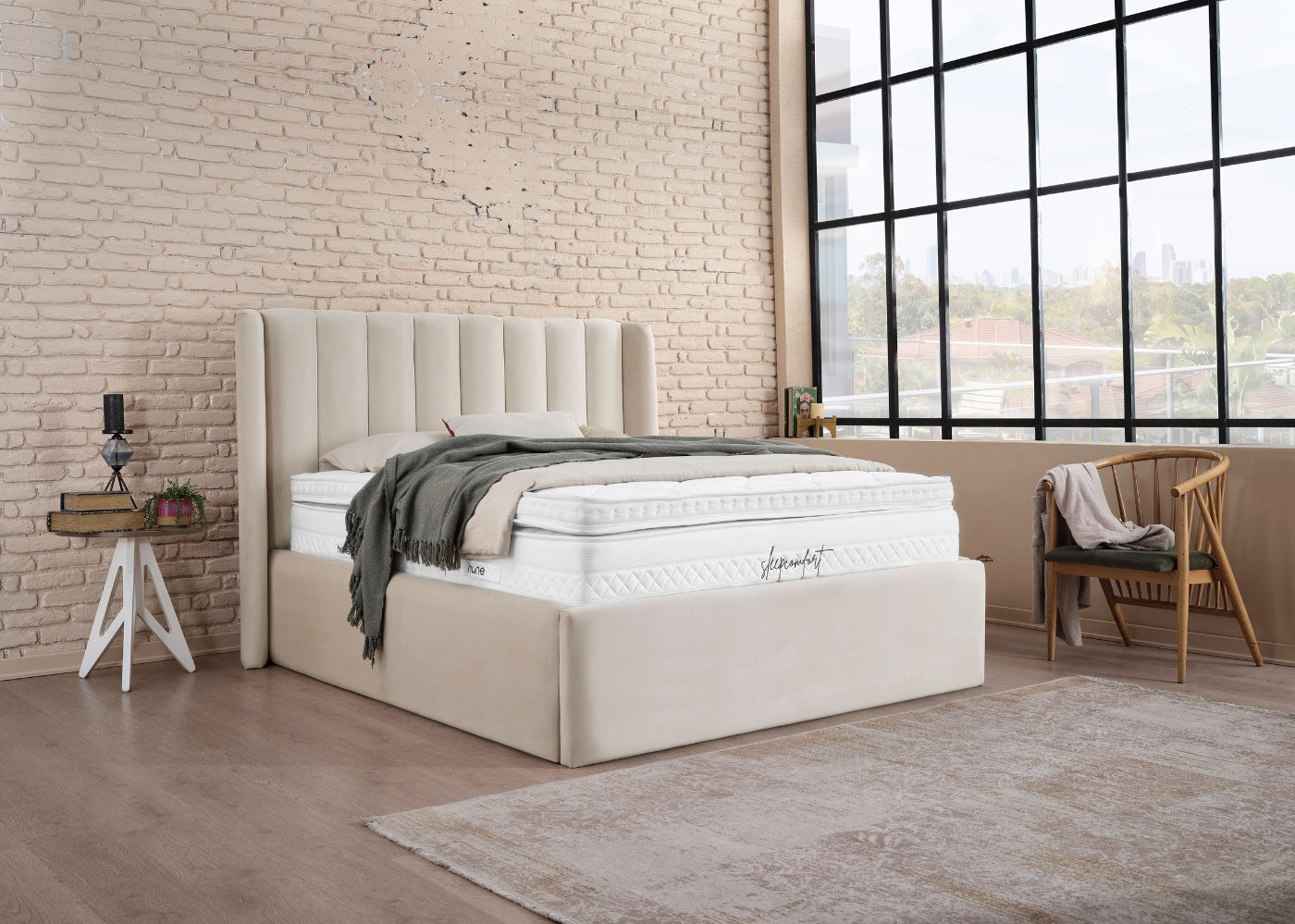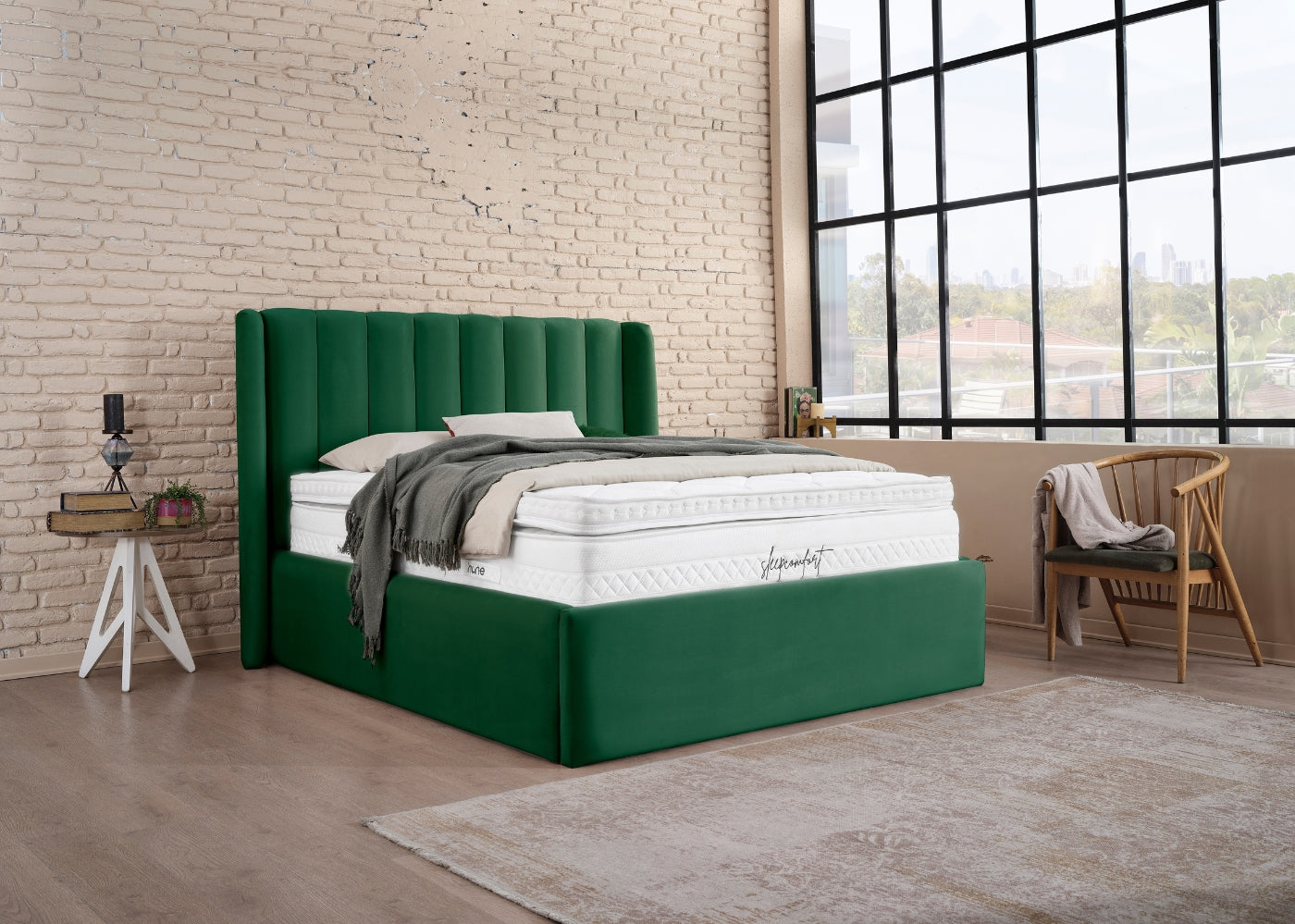 Das COMO Bett mit Bettkasten kombiniert modernes Design und durchdachte Funktionalität. Das elegante, gepolsterte Kopfteil verleiht deinem Schlafzimmer eine luxuriöse Atmosphäre und sorgt gleichzeitig für maximalen Komfort. Der weiche Samtstoff fühlt sich angenehm an und verleiht dem Bett eine edle Optik, die zu jeder Einrichtung passt. Der großzügige Bettkasten ist die perfekte Lösung für zusätzlichen Stauraum und lässt sich dank des stabilen Hebemechanismus mühelos öffnen. Der im Preis enthaltene Lattenrost und die SleepComfort-Matratze mit 5-Zonen-Taschenfederkern sorgen für einen erholsamen Schlaf und eine optimale Körperanpassung. Dieses Bett ist die perfekte Wahl für alle, die Stil und Funktionalität miteinander verbinden möchten.