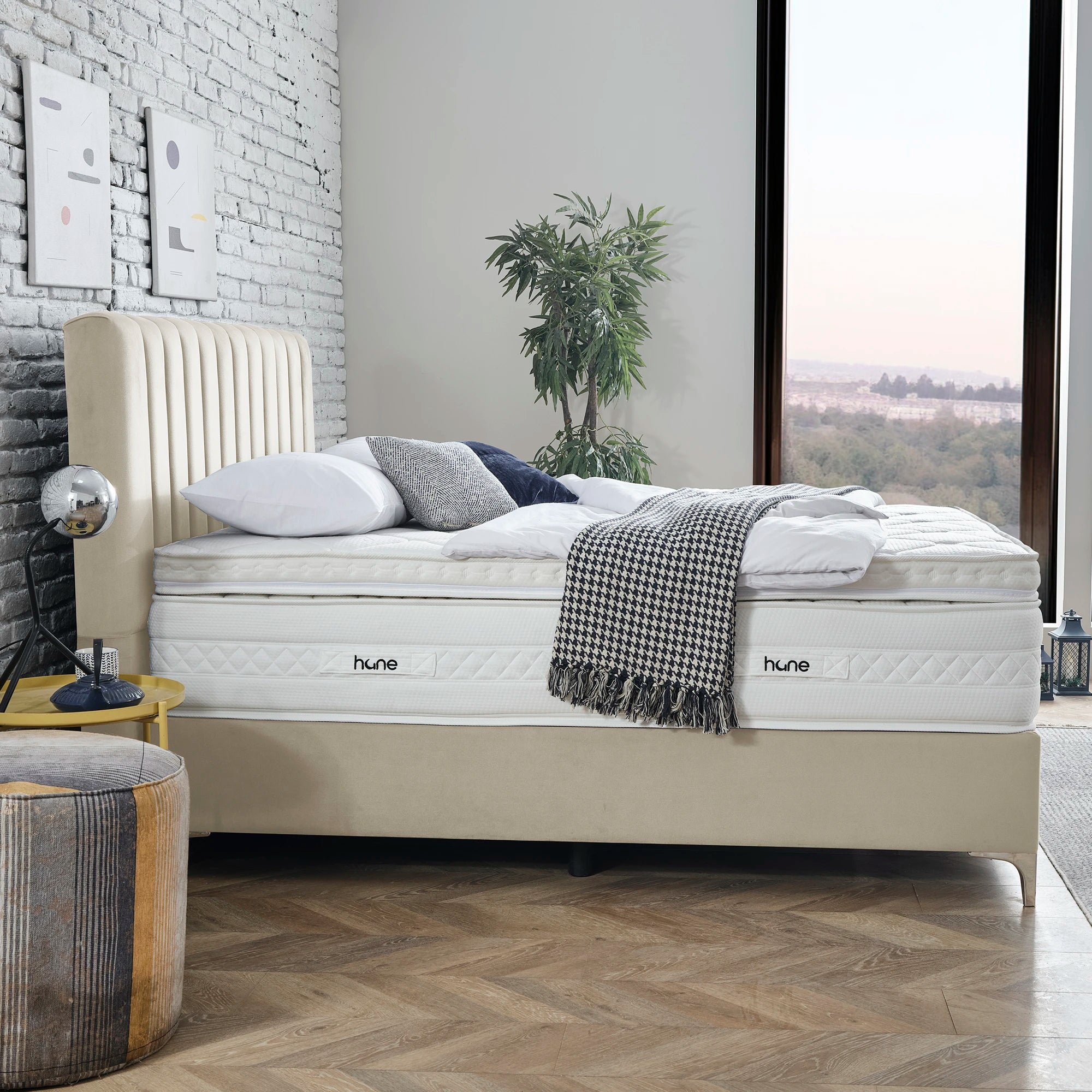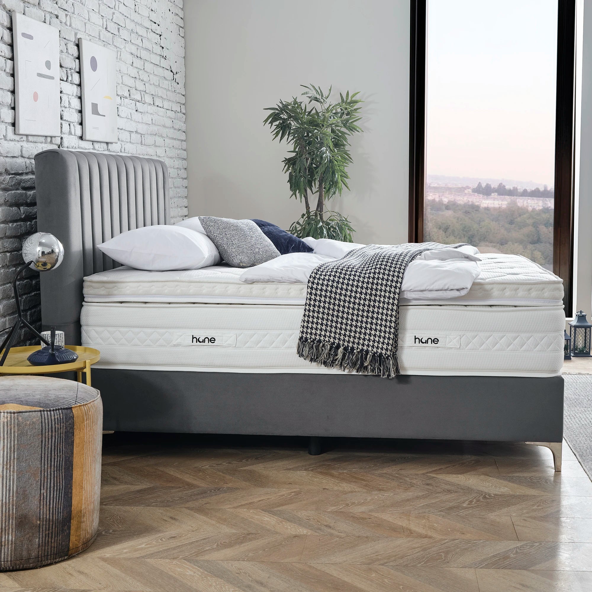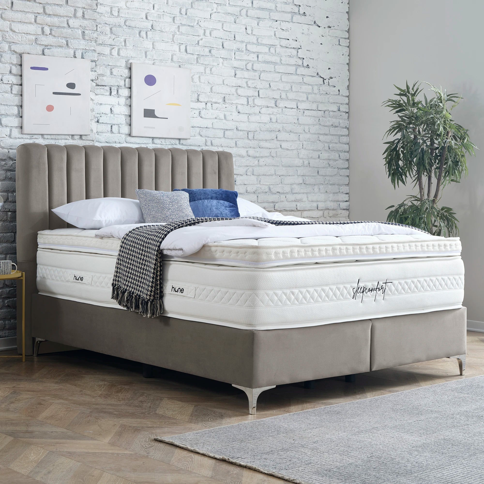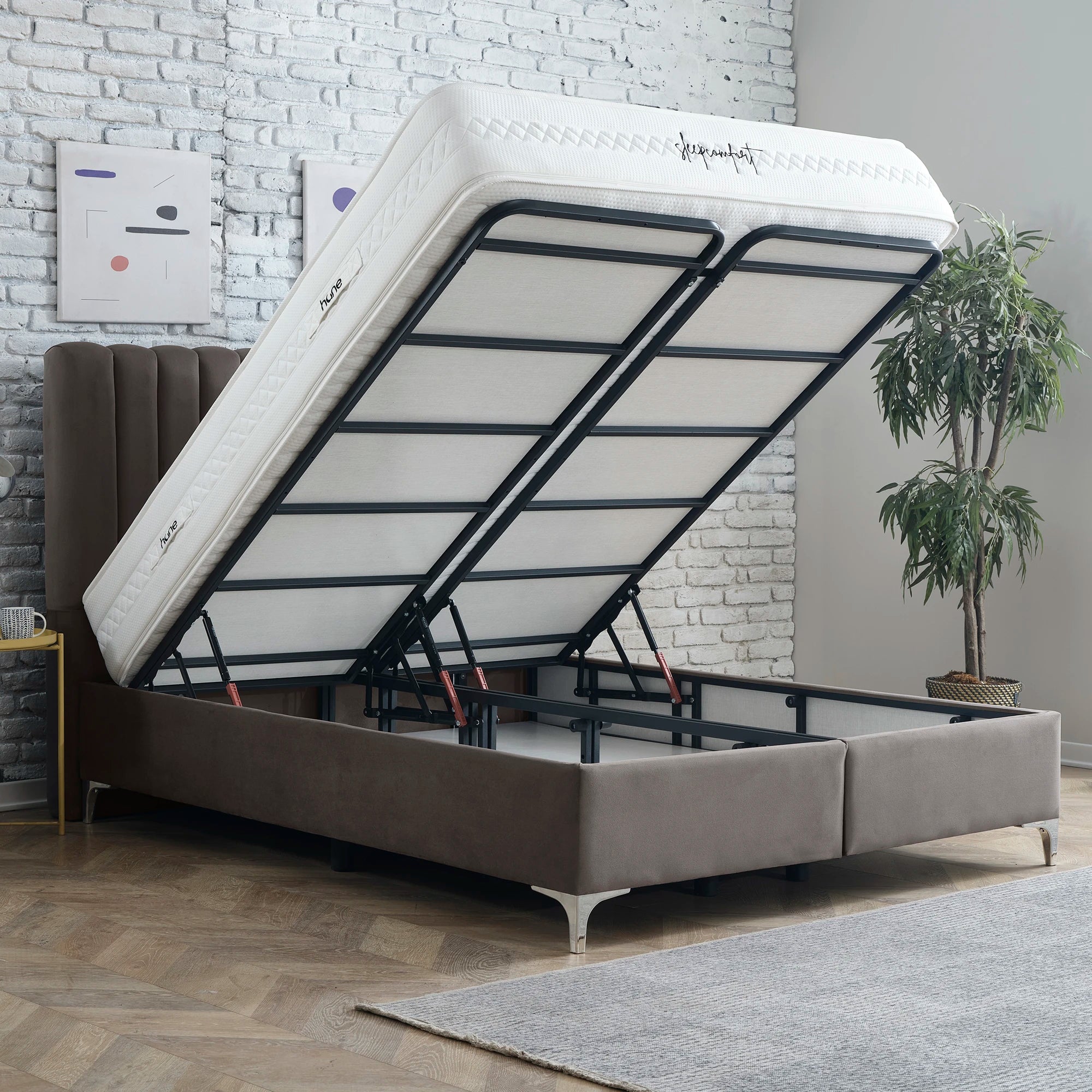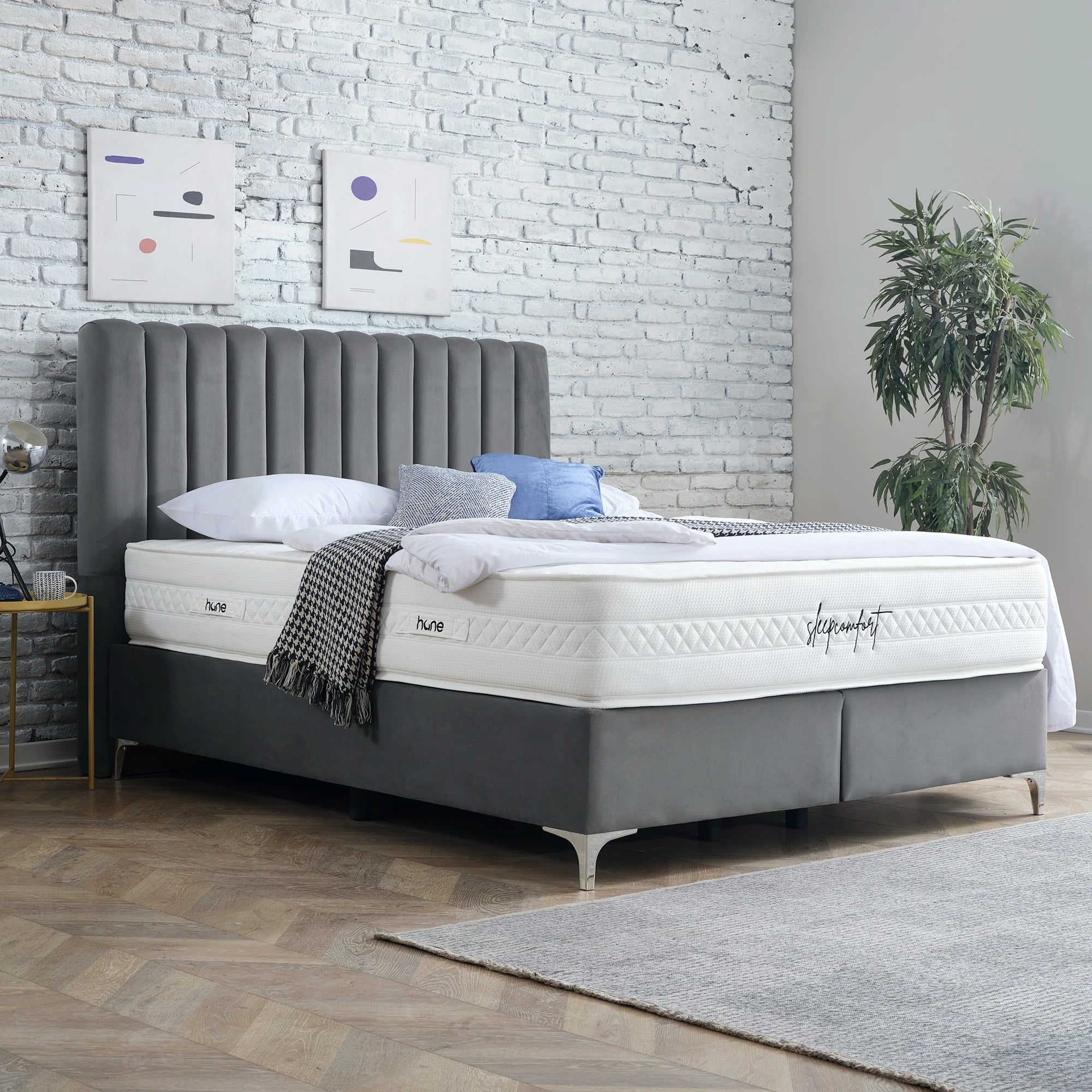 Das Bett mit Bettkasten DUBAI von Hane® vereint modernes Design, großzügigen Stauraum und luxuriösen Komfort. Das elegante, gepolsterte Kopfteil verleiht deinem Schlafzimmer eine zeitlose Ästhetik, während der geräumige Bettkasten mit einem stabilen Hebemechanismus einfachen Zugang zu zusätzlichem Stauraum ermöglicht. Die enthaltene SleepComfort-Matratze mit 5-Zonen-Taschenfederkern bietet dir optimalen Liegekomfort und passt sich perfekt an deine Bedürfnisse an. Mit anpassbaren Farb- und Fußoptionen fügt sich dieses Bett harmonisch in jeden Einrichtungsstil ein und sorgt für Ordnung und Stil zugleich.