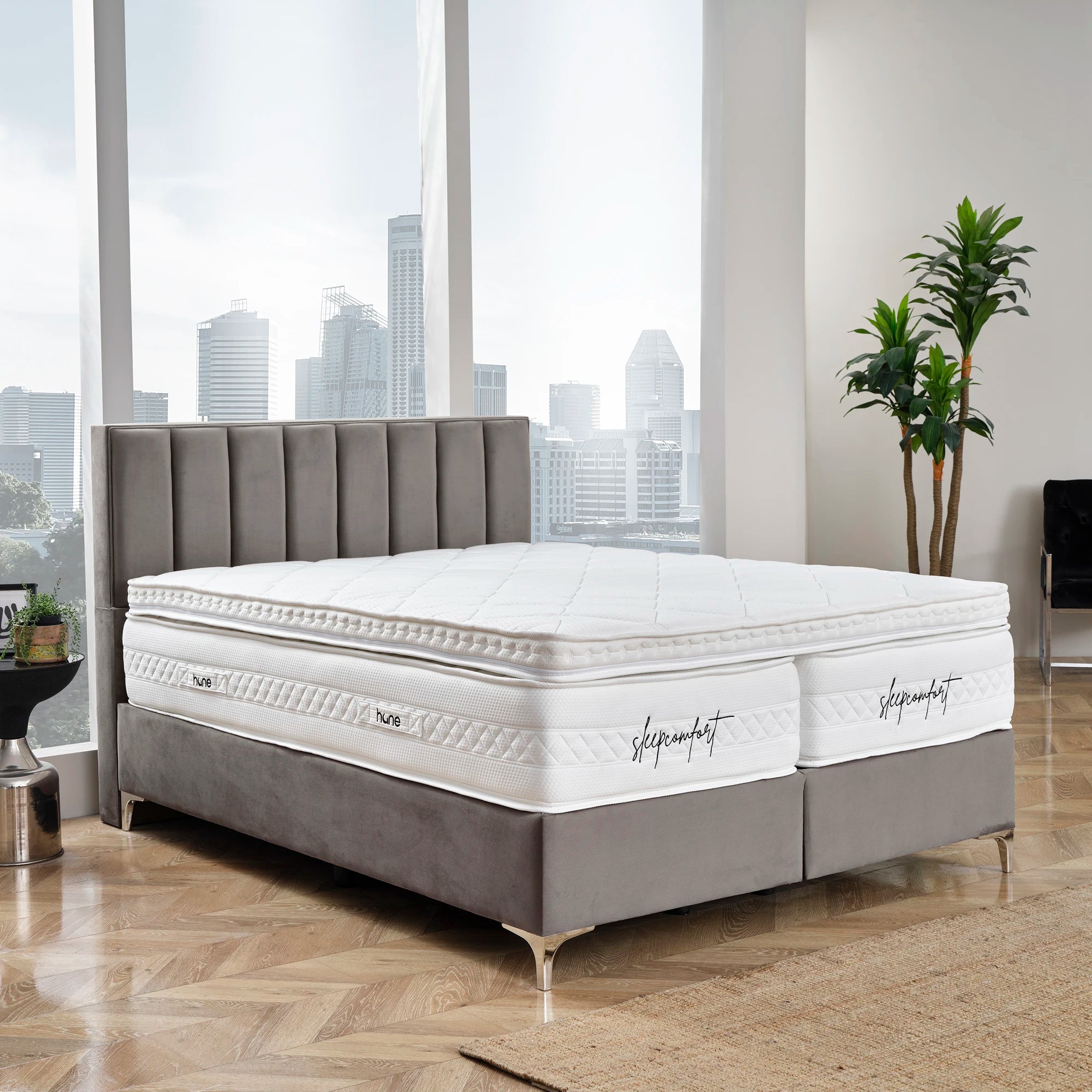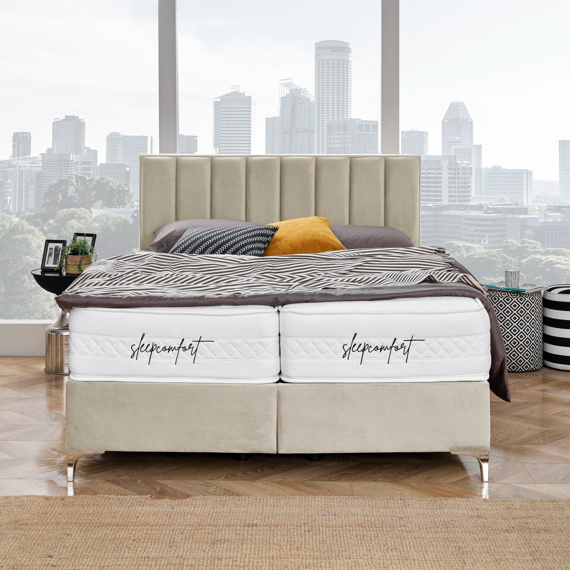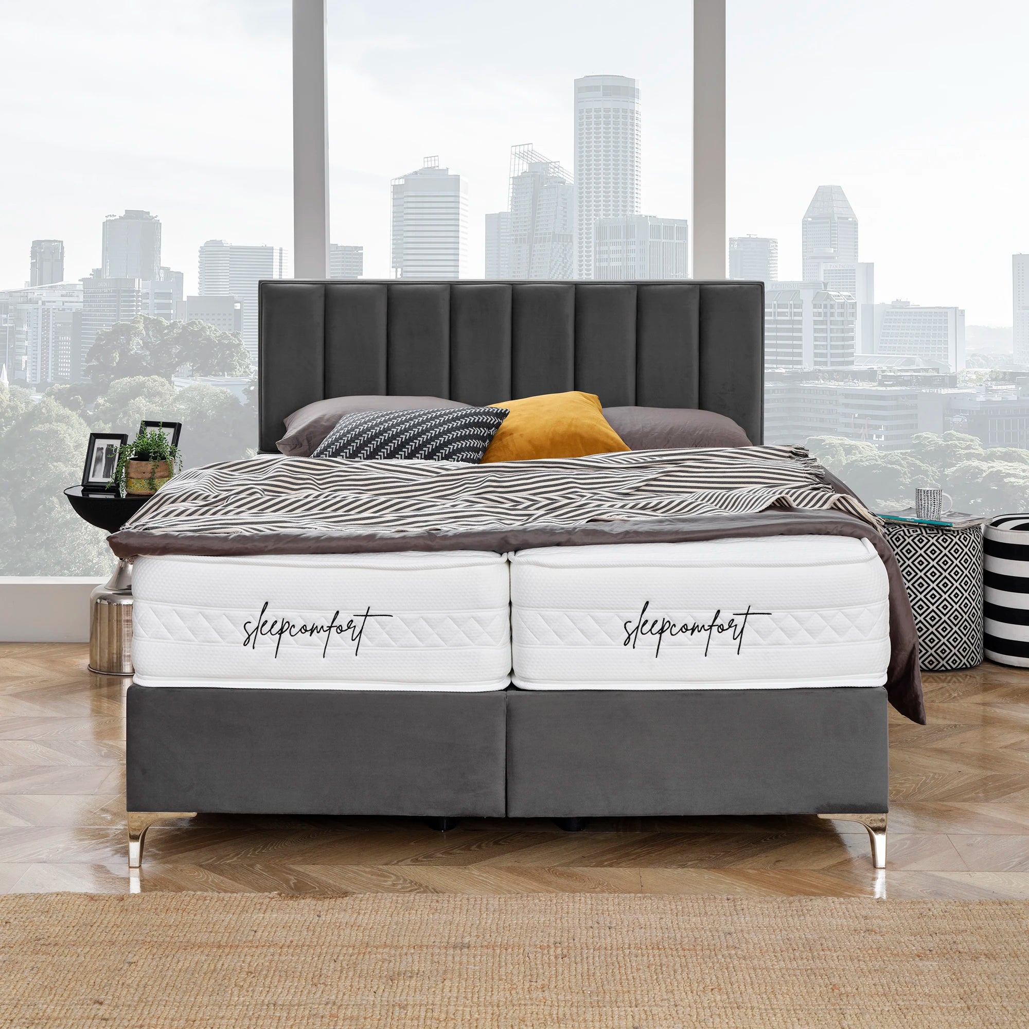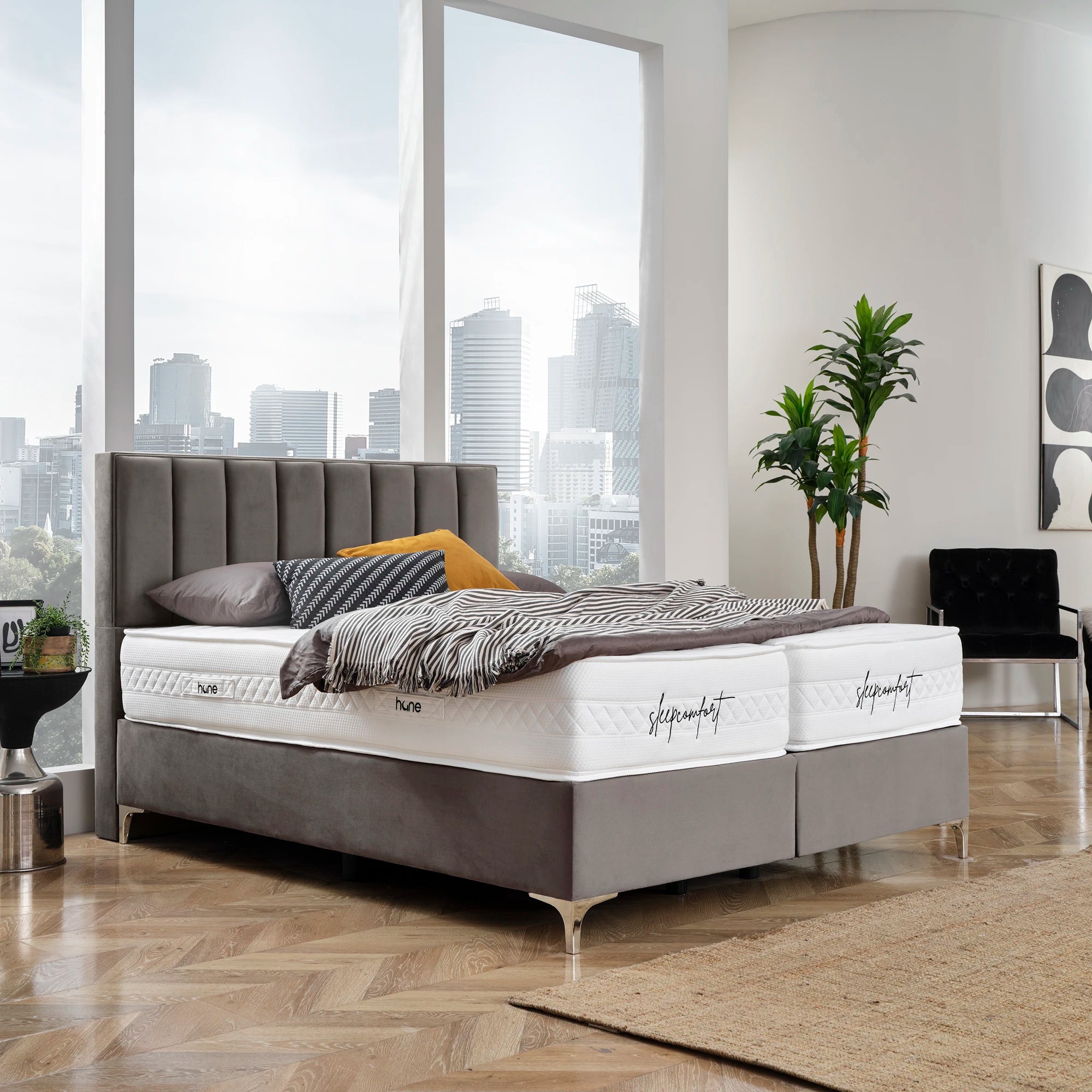 Das Hane® Bett mit Bettkasten Paris vereint modernes Design, funktionalen Stauraum und höchsten Komfort. Der samtweiche Velourstoff verleiht dem Bett eine luxuriöse Optik, während das gepolsterte Kopfteil mit vertikalen Nähten für eine schlichte Eleganz sorgt. Mit einem geräumigen Bettkasten und der SleepComfort-Matratze bietet das Bett die ideale Kombination aus Stil und Funktionalität. Perfekt für moderne Schlafzimmer, die Wert auf Ordnung und Ästhetik legen.