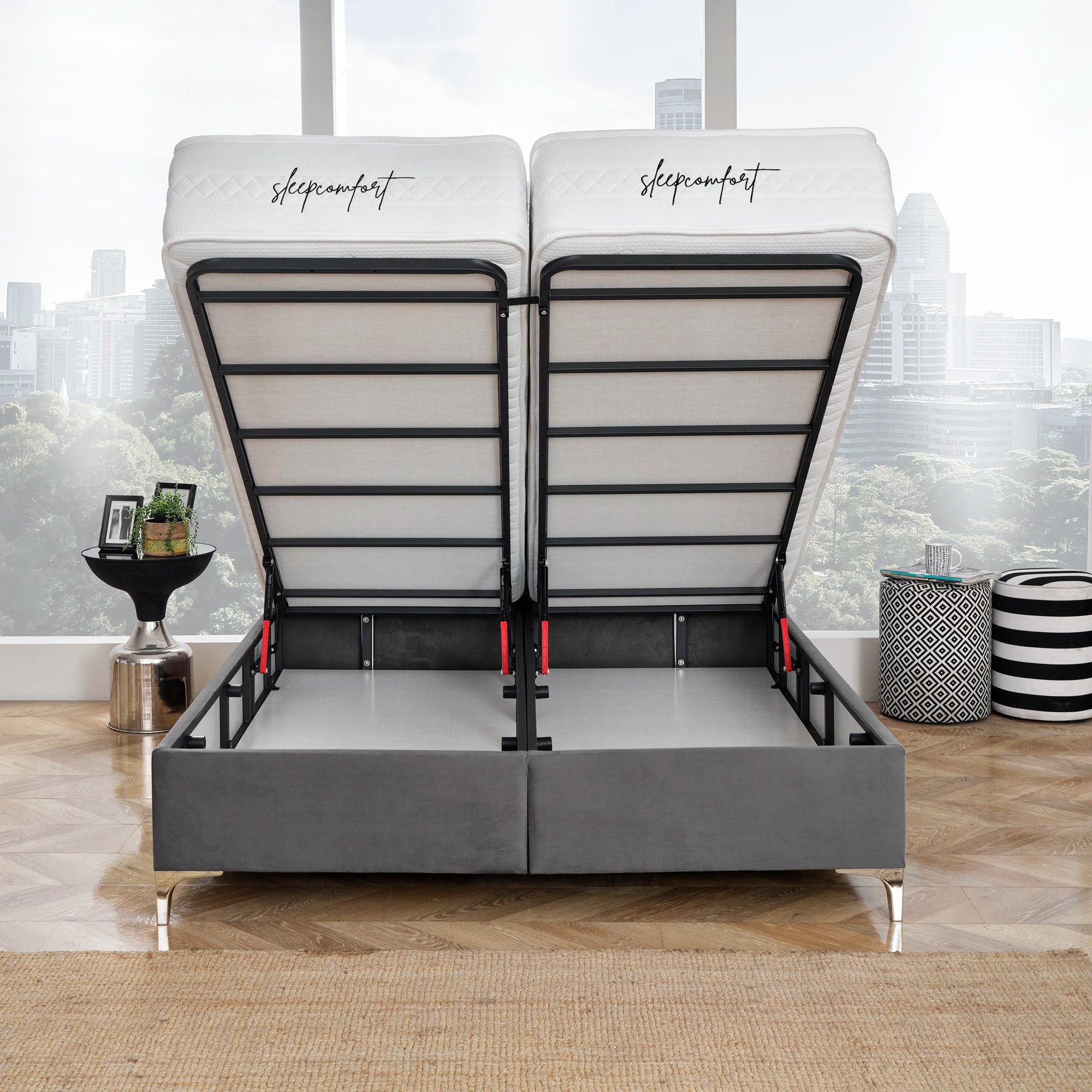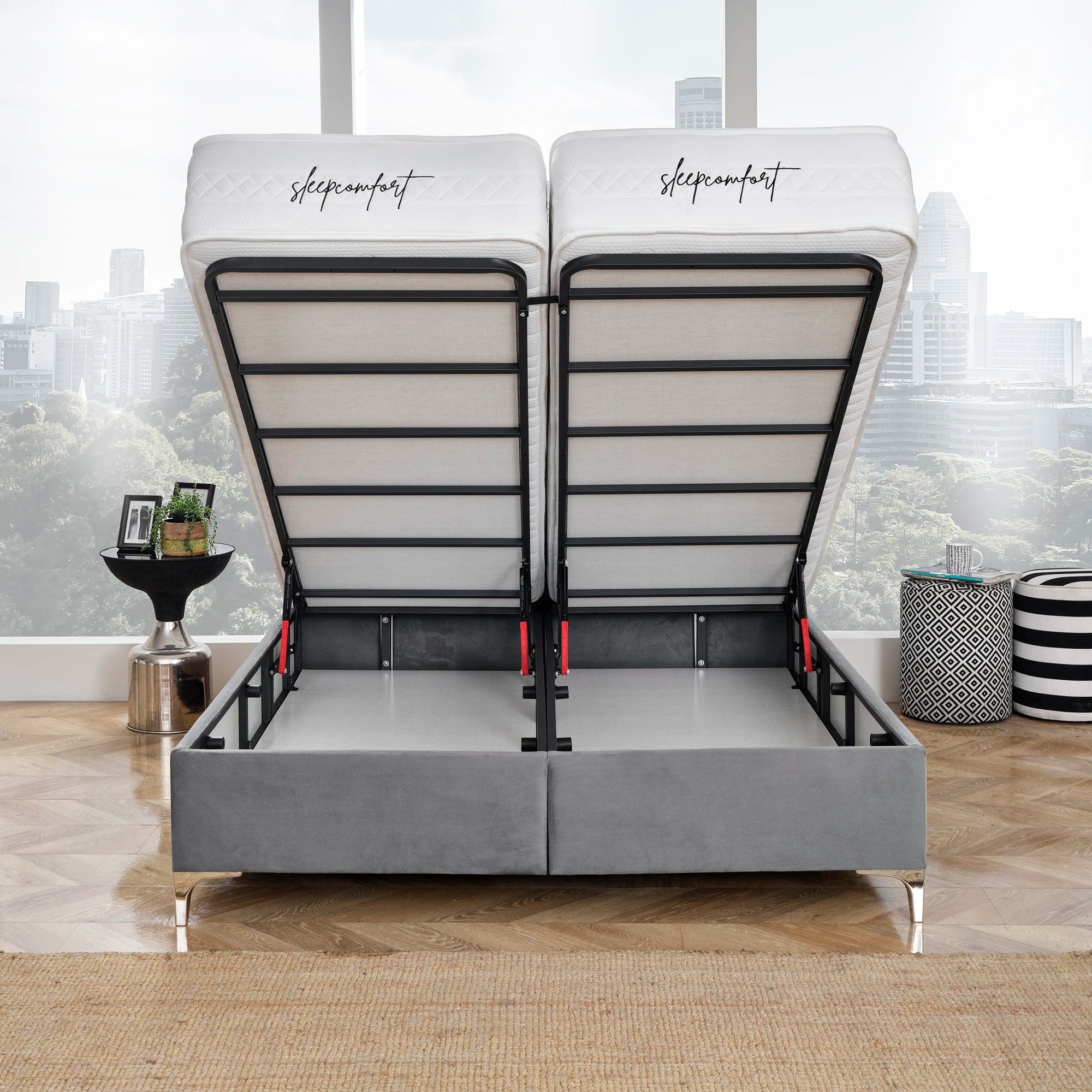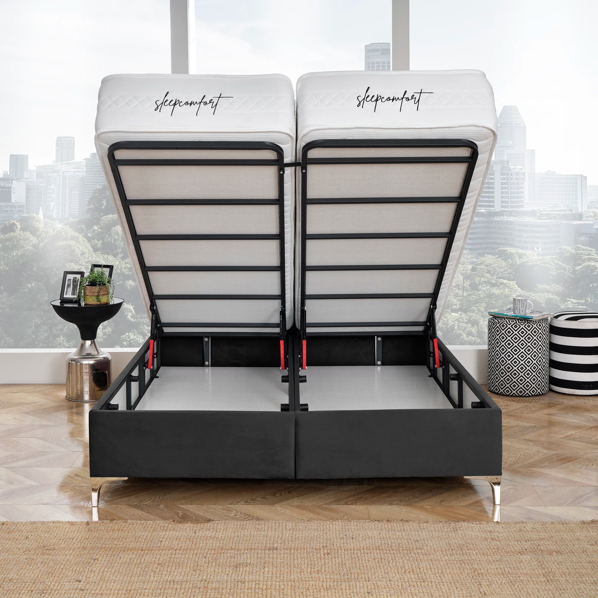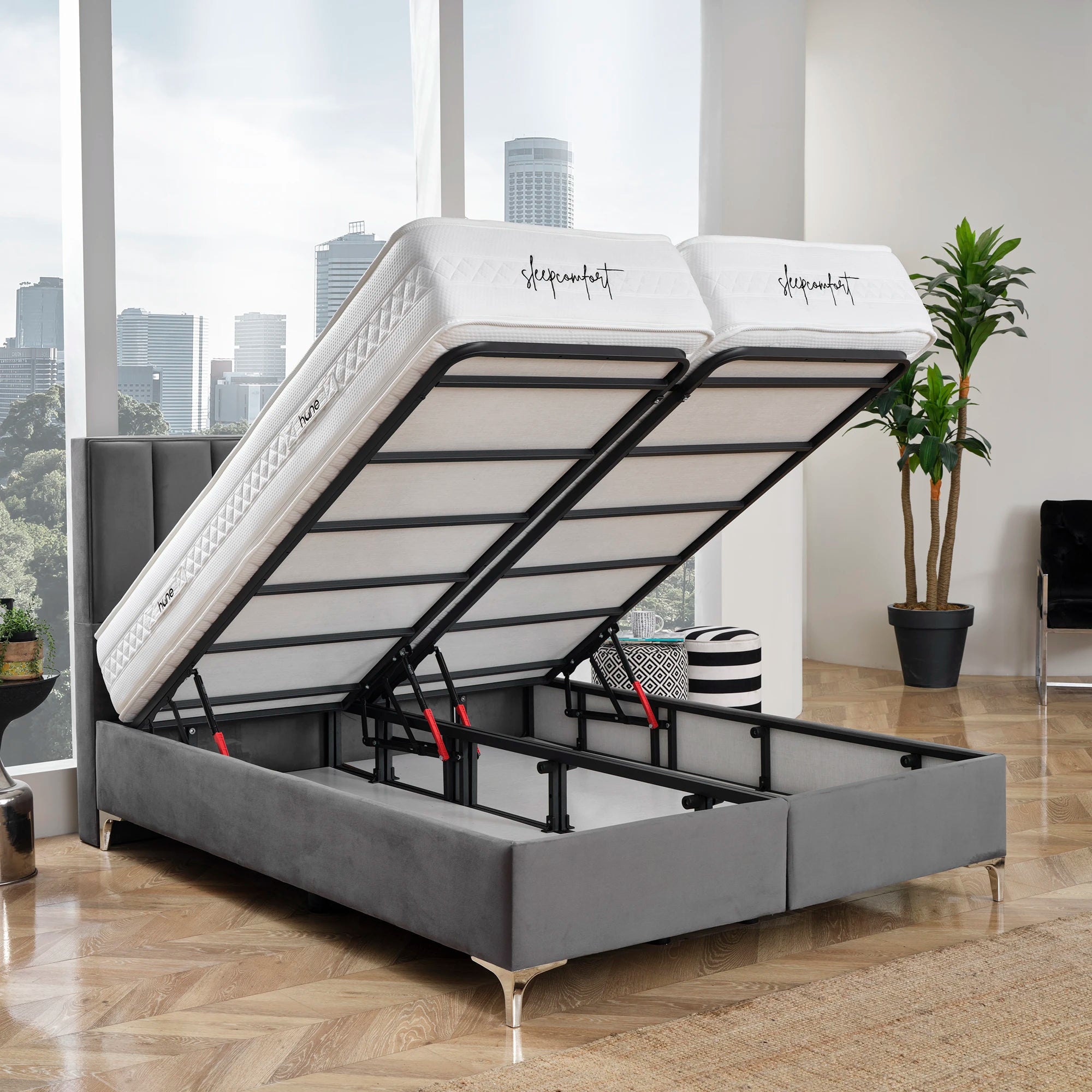 Das Hane® Bett mit Bettkasten Paris vereint modernes Design, funktionalen Stauraum und höchsten Komfort. Der samtweiche Velourstoff verleiht dem Bett eine luxuriöse Optik, während das gepolsterte Kopfteil mit vertikalen Nähten für eine schlichte Eleganz sorgt. Mit einem geräumigen Bettkasten und der SleepComfort-Matratze bietet das Bett die ideale Kombination aus Stil und Funktionalität. Perfekt für moderne Schlafzimmer, die Wert auf Ordnung und Ästhetik legen.
