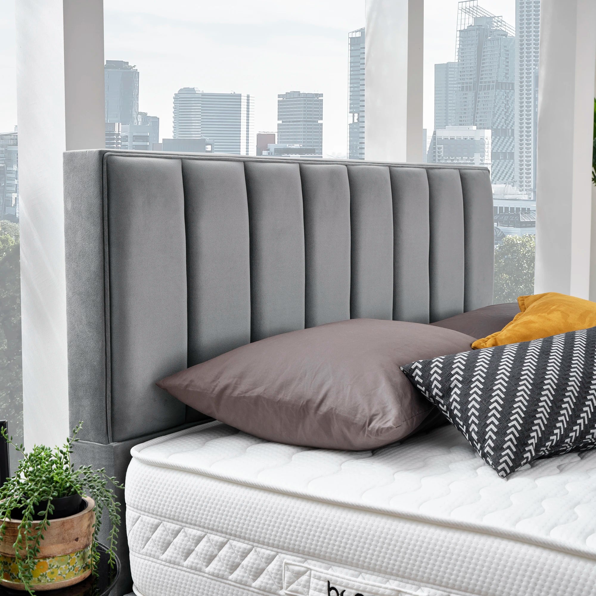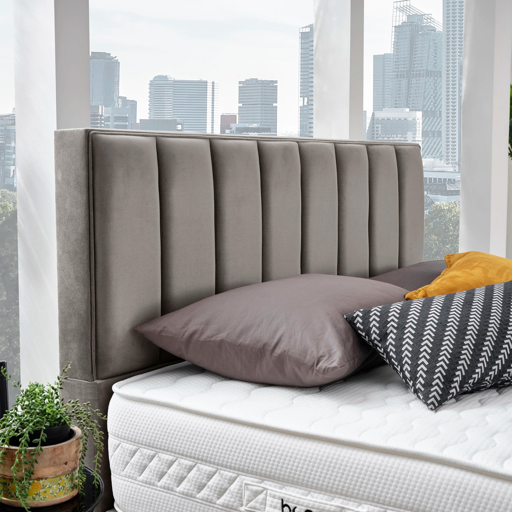 - Gepolstertes Kopfteil mit eleganten vertikalen Nähten