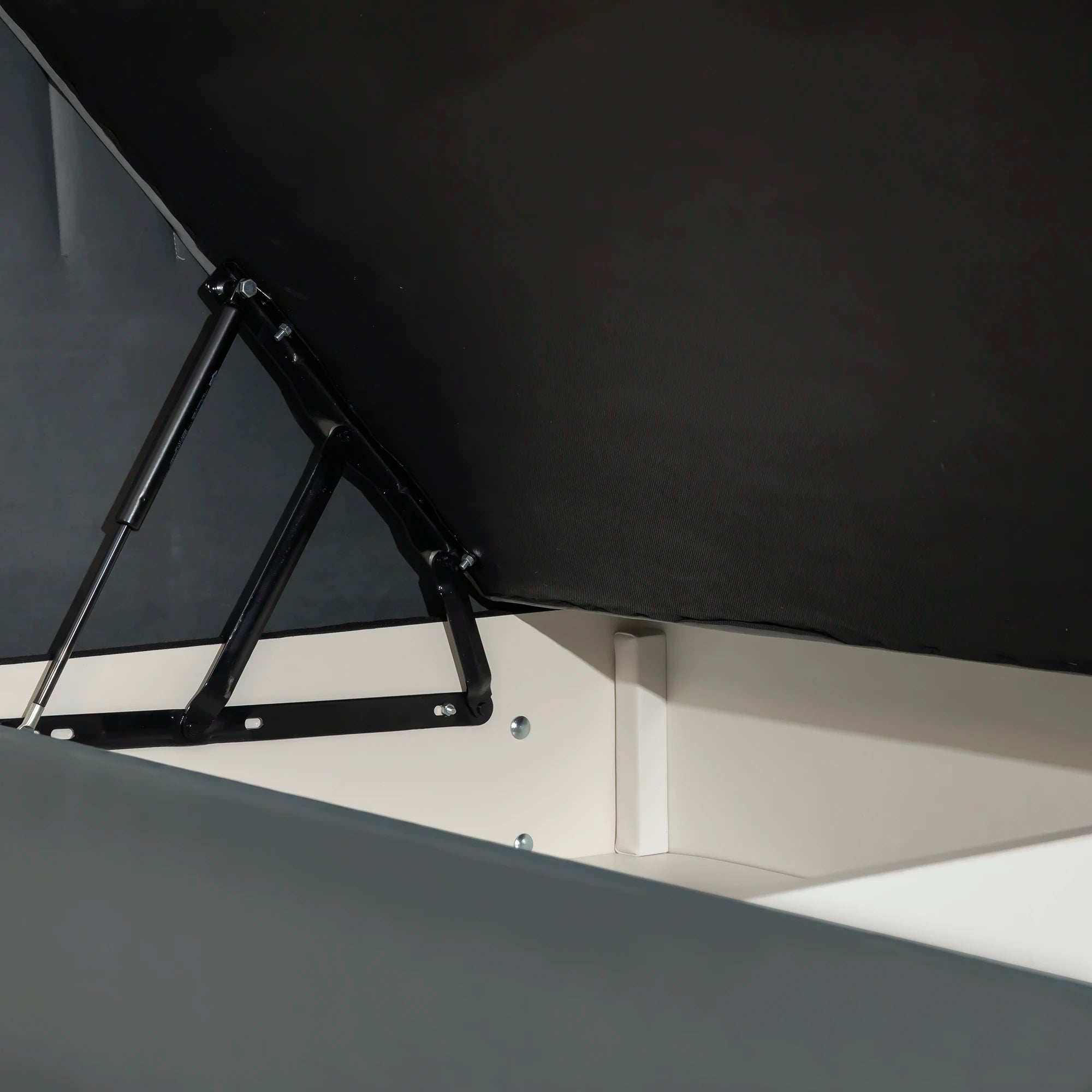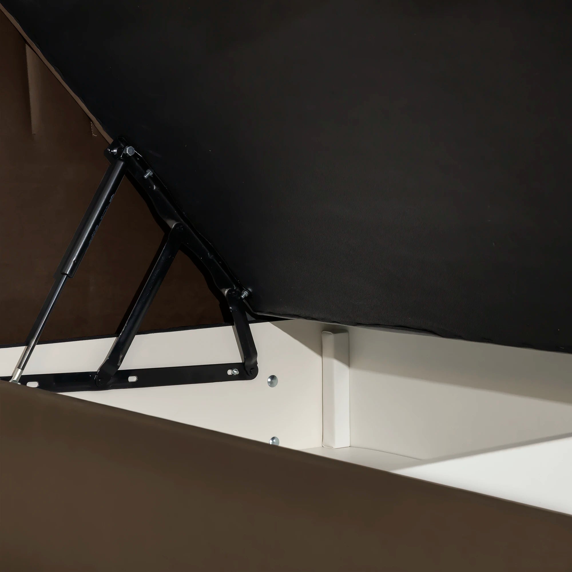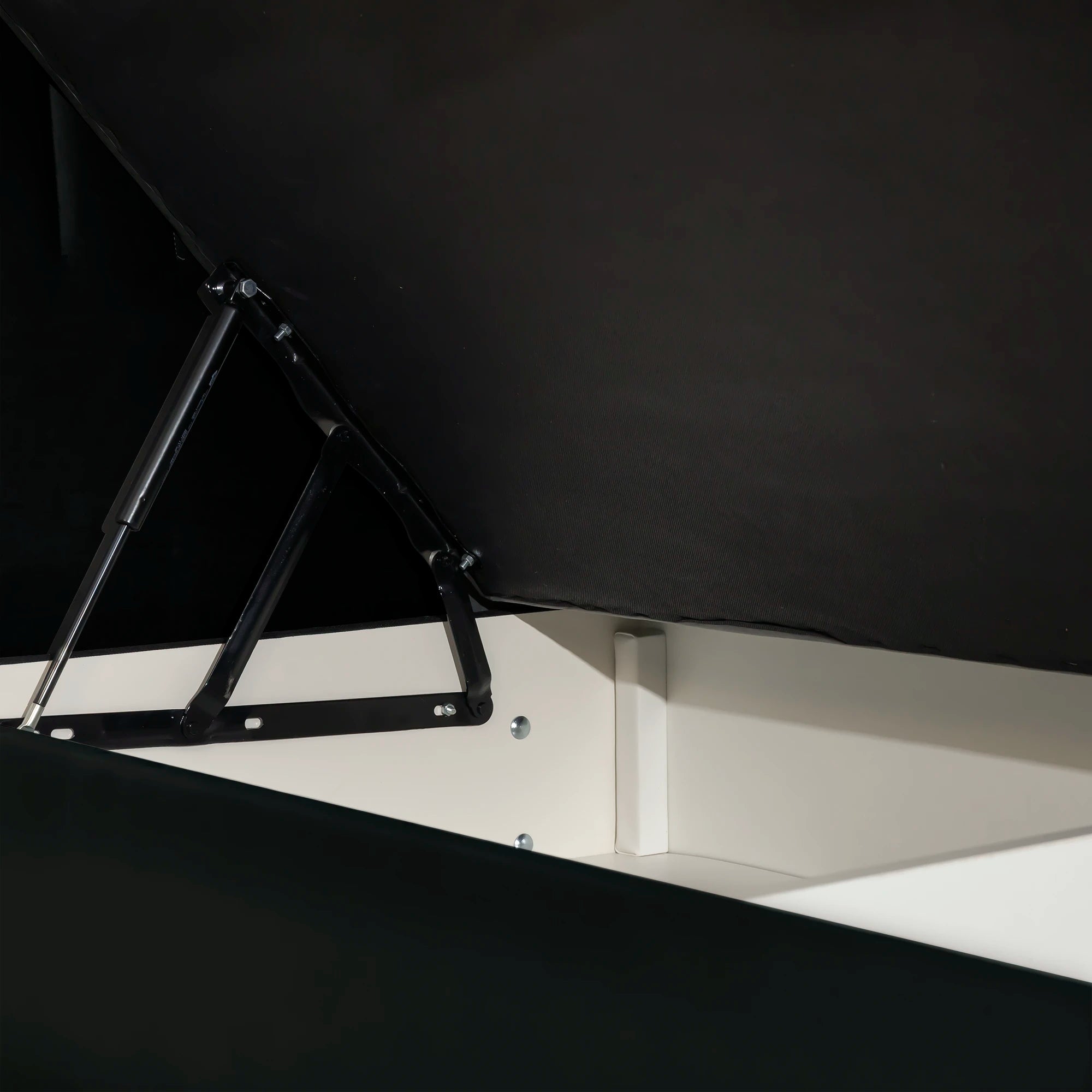 Mozart vereint Funktion und Form auf höchstem Niveau. Das hohe Kopfteil mit weicher, vertikal gesteppten Polsterung bietet nicht nur luxuriösen Komfort beim Anlehnen, sondern wirkt durch die sanft gerundeten Kanten angenehm harmonisch, trotz seiner imposanten Höhe. Der glatt gepolsterte Unterbau verzichtet auf sichtbare Nähte oder Verzierung – so bleibt die Linienführung klar und modern. Im Inneren verbirgt sich großzügiger Stauraum, der seitlich über zwei stabile Gasdruckfedern pro Seite zugänglich ist – leichtgängig und praktisch, selbst in schmaleren Räumen. Schlanke, leicht ausgestellte Metallfüße heben das Bett optisch an und verleihen ihm eine schwebende Eleganz. Mozart ist die Antwort für alle, die minimalistisches Design, hochwertige Verarbeitung und alltagstaugliche Stauraumlösungen suchen.