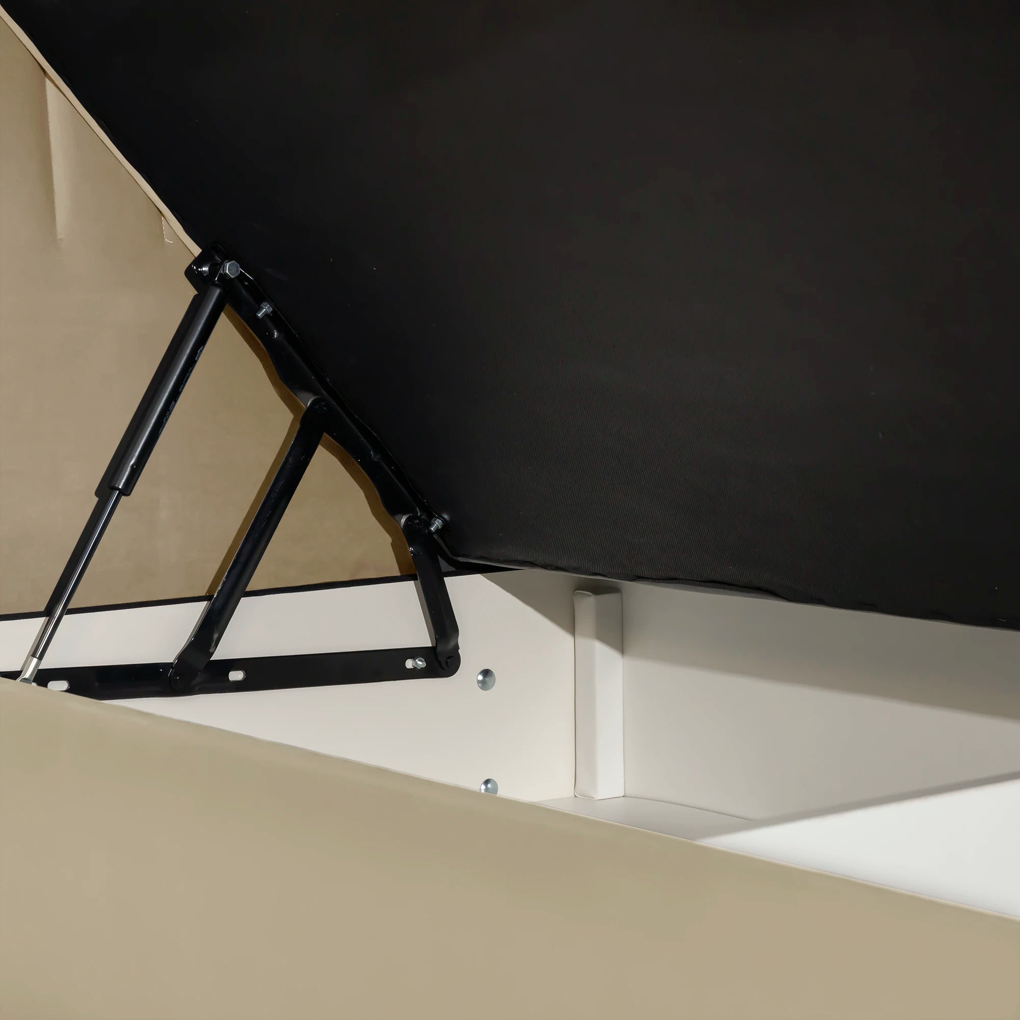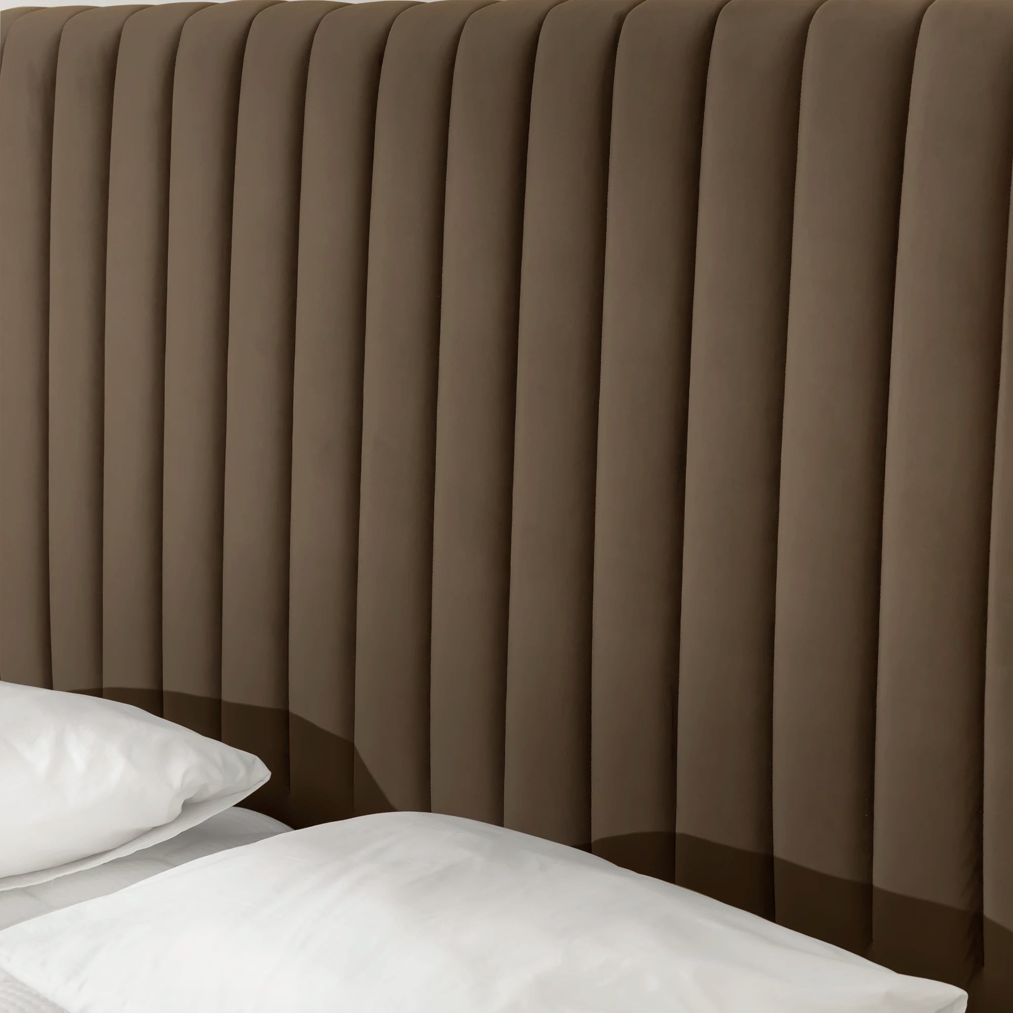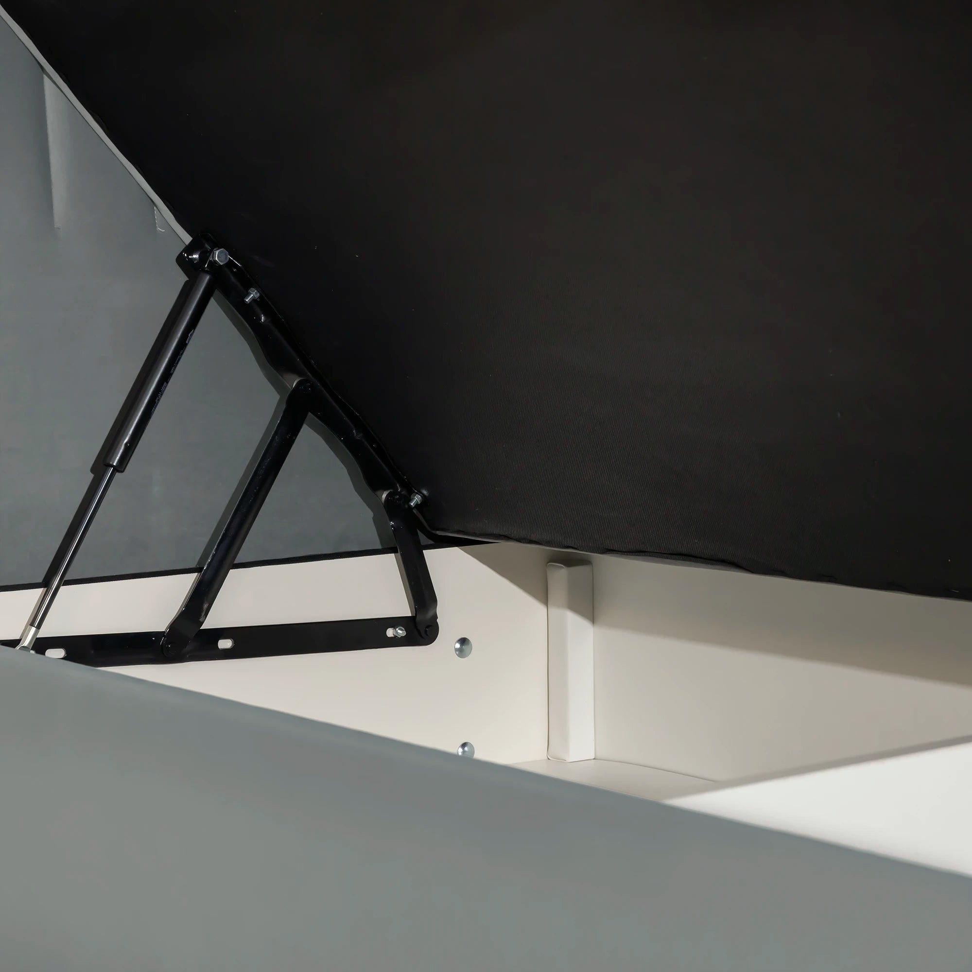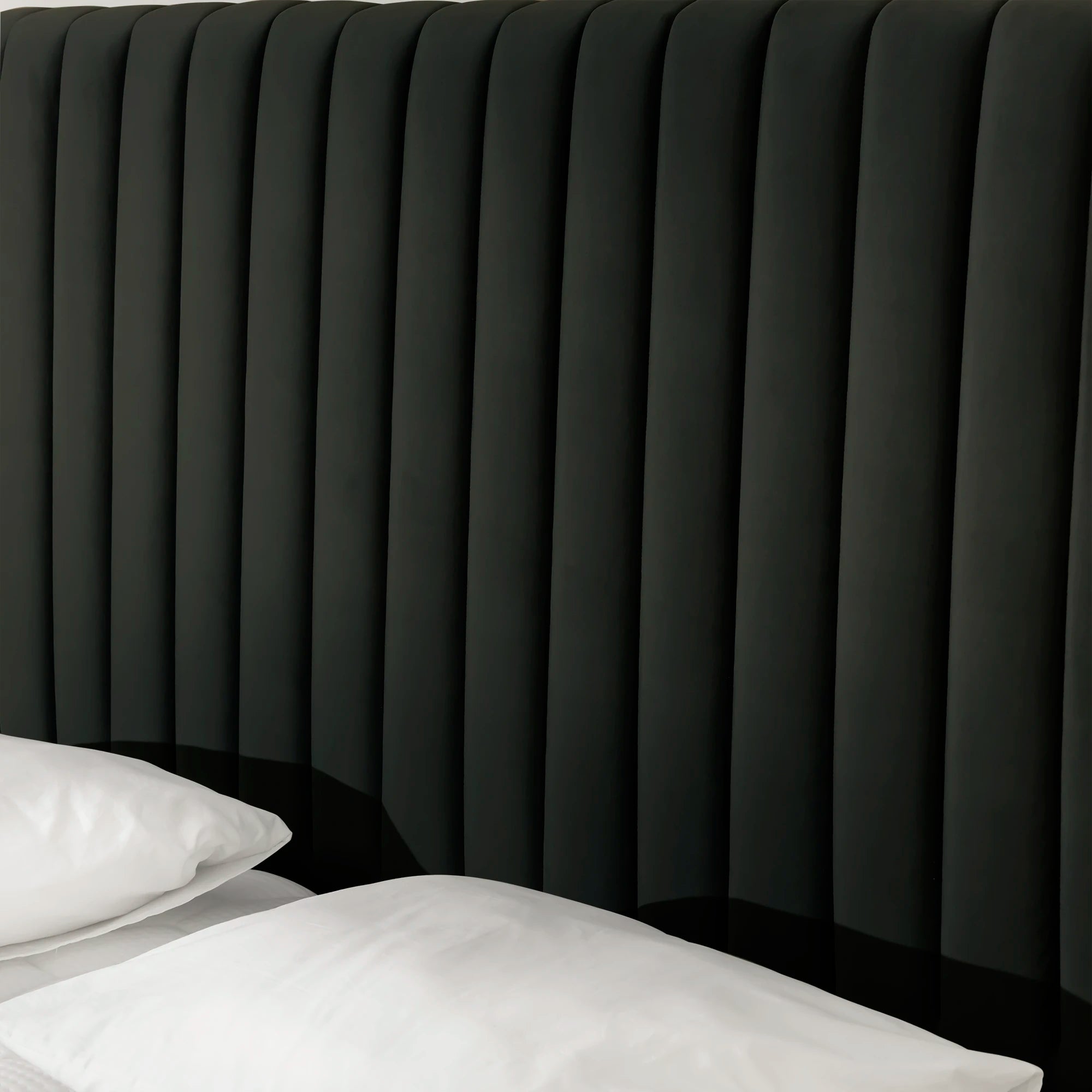 Mozart vereint Funktion und Form auf höchstem Niveau. Das hohe Kopfteil mit weicher, vertikal gesteppten Polsterung bietet nicht nur luxuriösen Komfort beim Anlehnen, sondern wirkt durch die sanft gerundeten Kanten angenehm harmonisch, trotz seiner imposanten Höhe. Der glatt gepolsterte Unterbau verzichtet auf sichtbare Nähte oder Verzierung – so bleibt die Linienführung klar und modern. Im Inneren verbirgt sich großzügiger Stauraum, der seitlich über zwei stabile Gasdruckfedern pro Seite zugänglich ist – leichtgängig und praktisch, selbst in schmaleren Räumen. Schlanke, leicht ausgestellte Metallfüße heben das Bett optisch an und verleihen ihm eine schwebende Eleganz. Mozart ist die Antwort für alle, die minimalistisches Design, hochwertige Verarbeitung und alltagstaugliche Stauraumlösungen suchen.