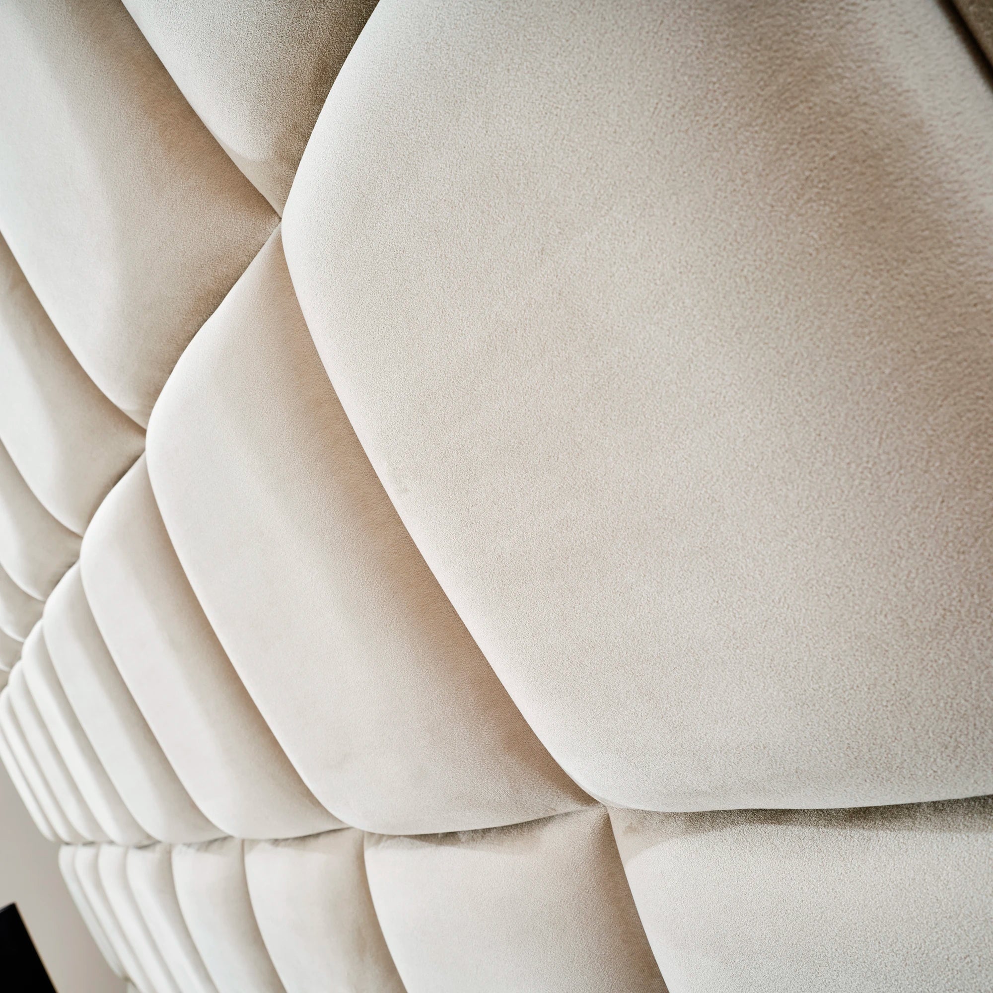 - Prächtig gepolstertes Kopfteil mit einzigartigem Design