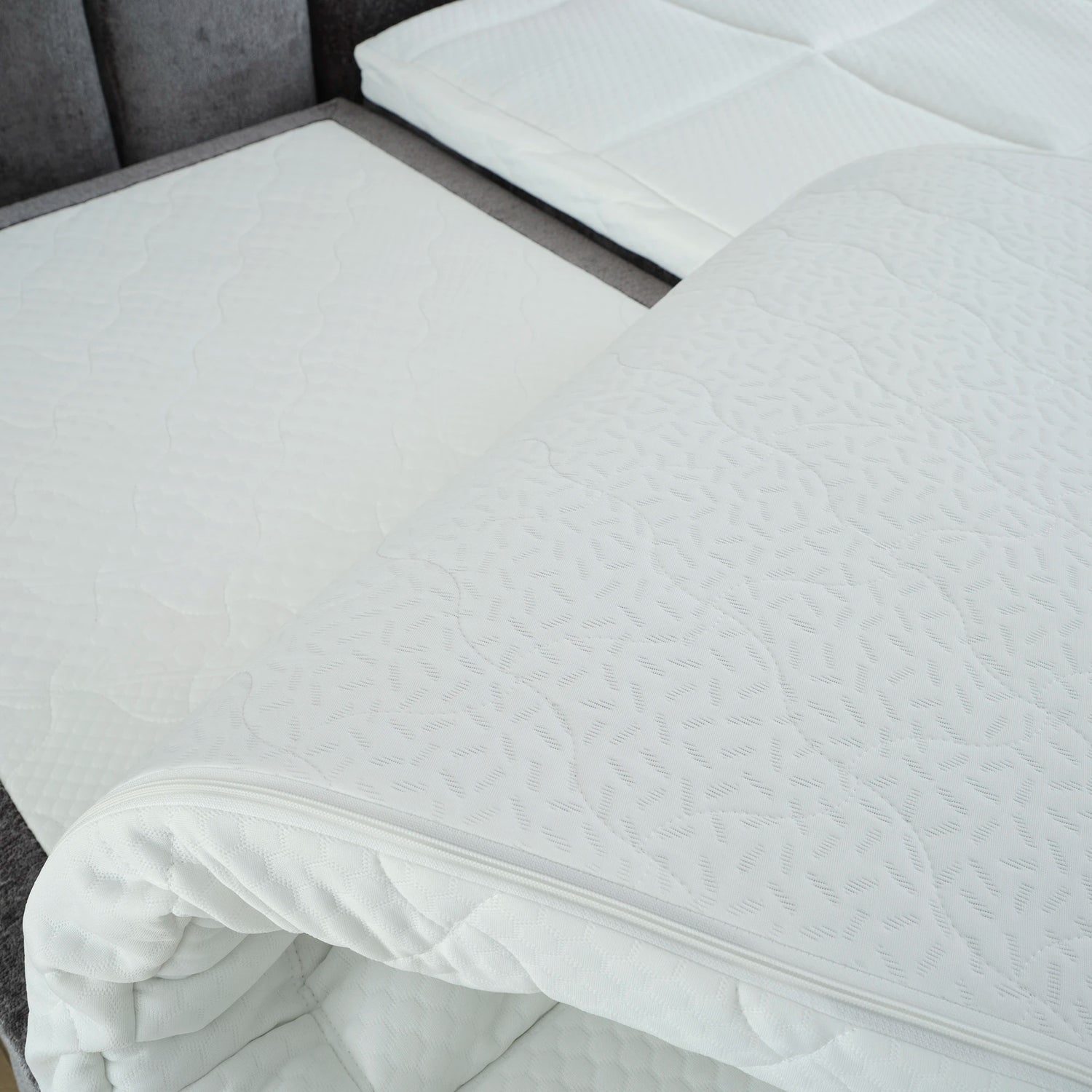 - Hybrid-Schaum-Topper mit sehr guter Luftzirkulation, waschbarem Bezug und angenehm druckentlastender Oberfläche.