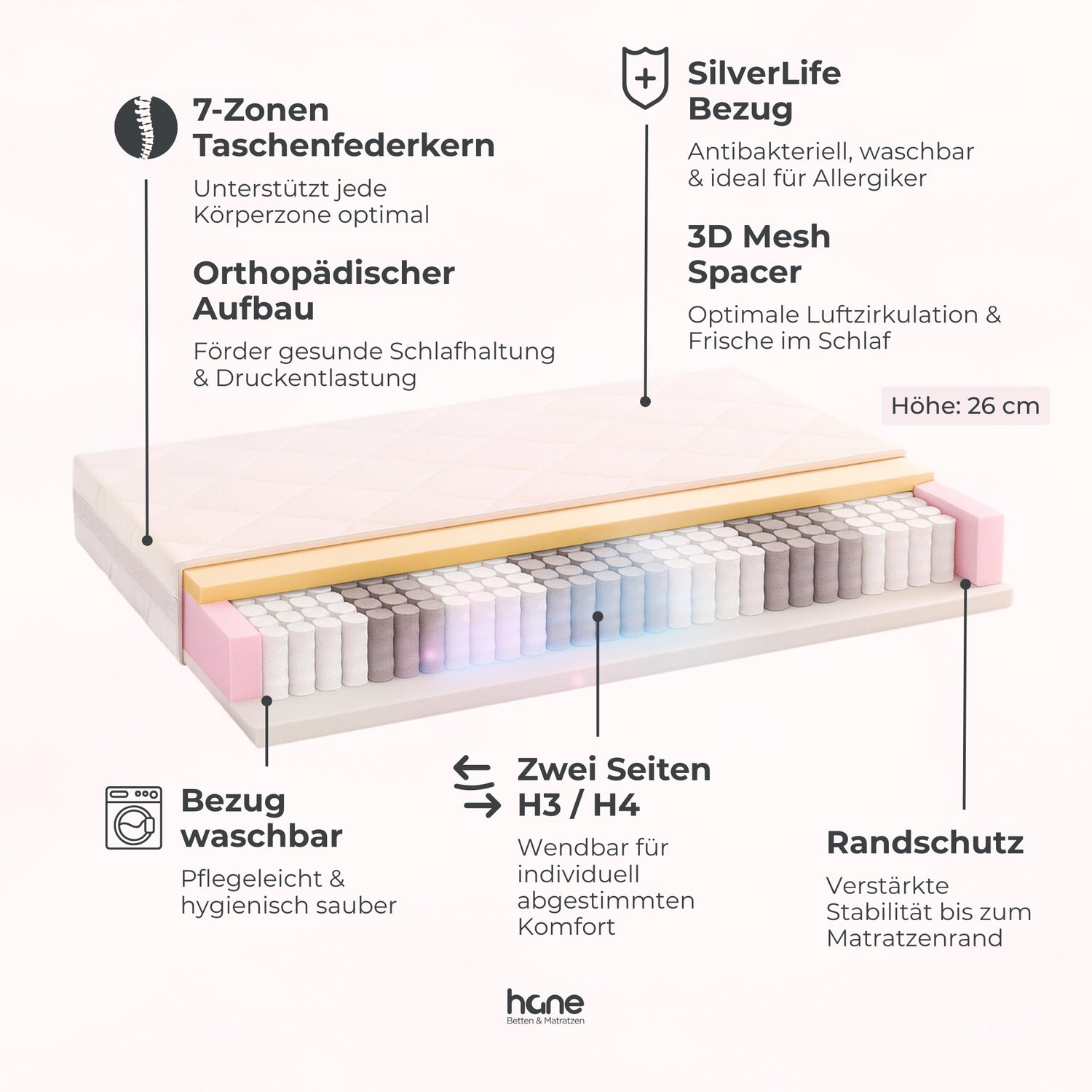 - 7-Zonen-Taschenfederkern stützt jede Körperzone optimal