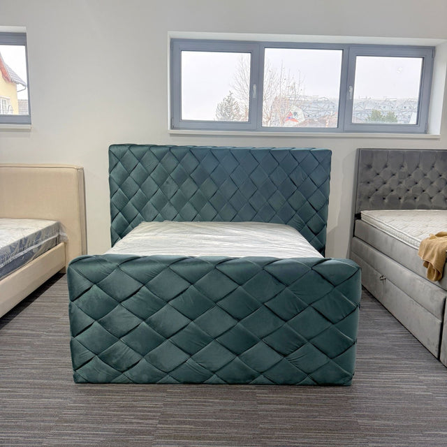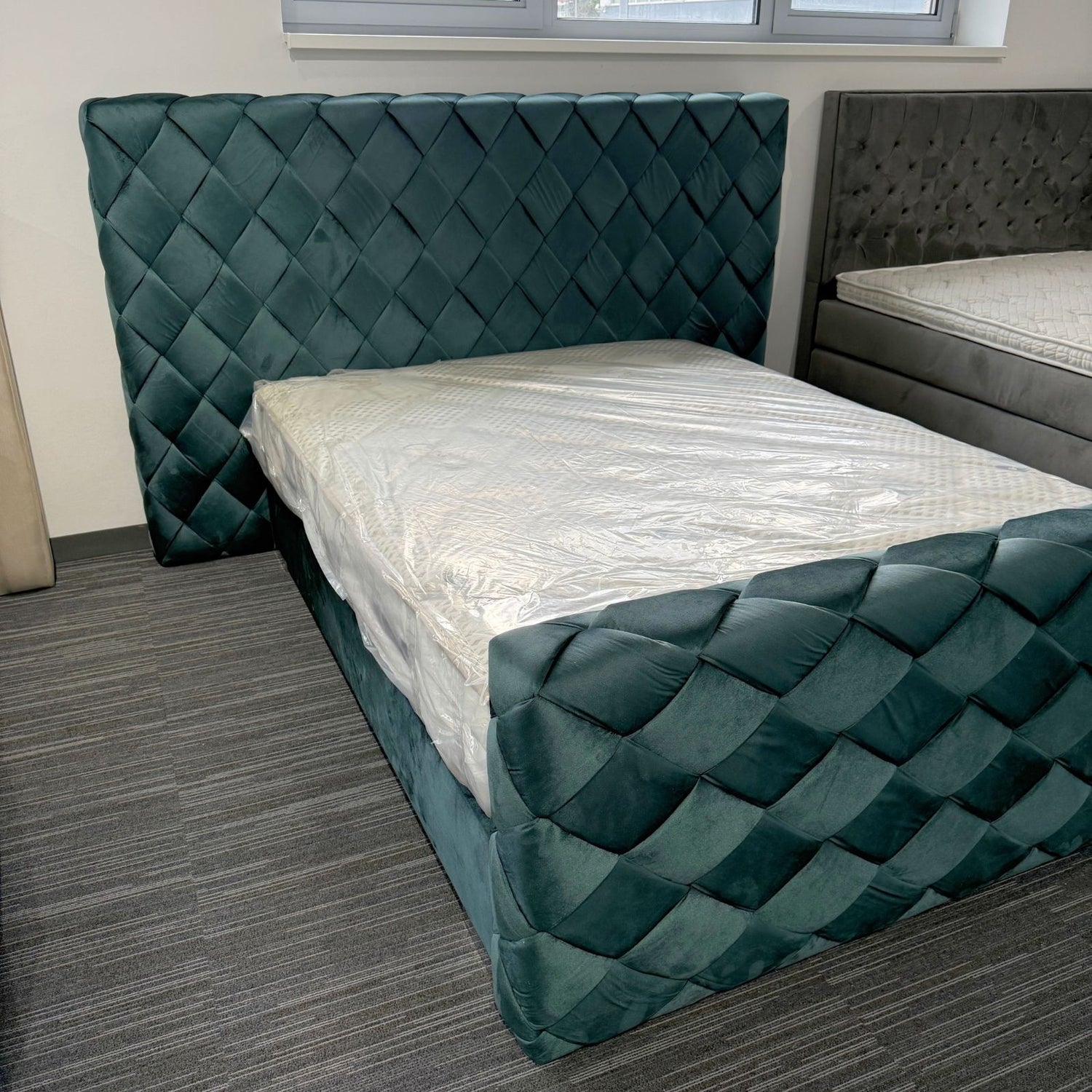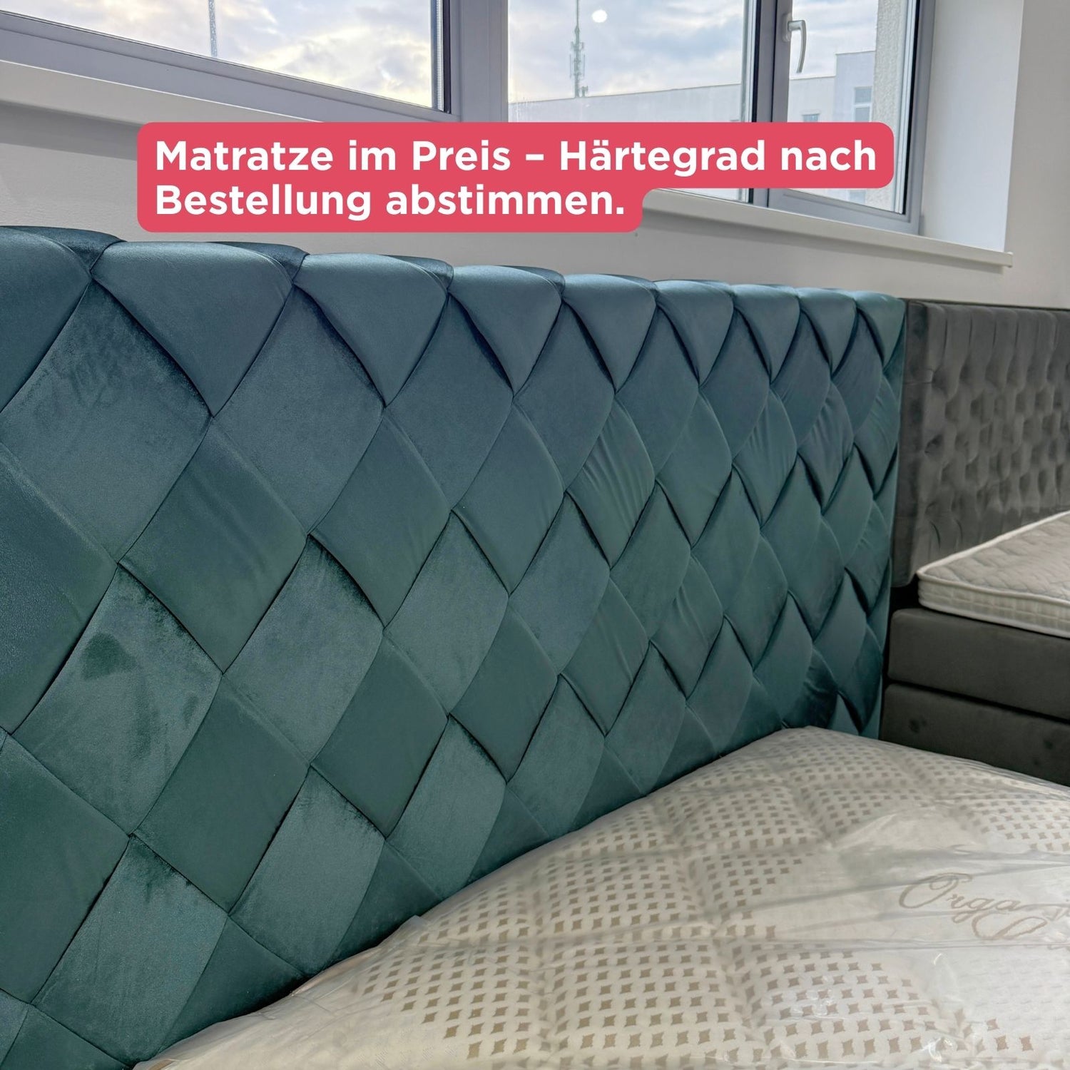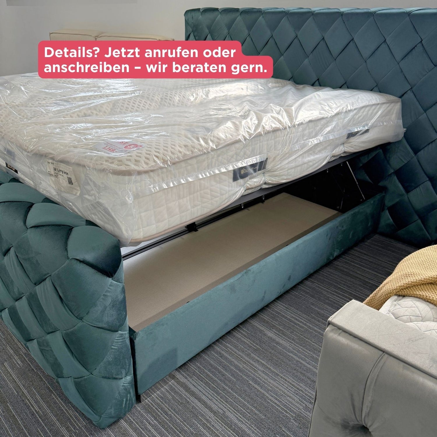 CROSS DUO ist die perfekte Verbindung aus Design & Funktion. Das auffällige Netz-Muster verleiht Kopf- und Fußteil eine einzigartige Struktur. Der luxuriöse Petrol-Türkis-Ton sorgt für ein modernes, ruhiges und elegantes Ambiente. Ohne Füße liegt CROSS DUO komplett am Boden und wirkt besonders stabil und hochwertig. Dazu bietet der seitliche Stauraum viel Platz für alles, was im Schlafzimmer sauber verstaut werden soll.