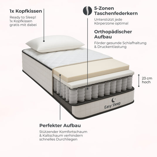 EasySleep Matratze 90x200 (+ 1x Gratis Kopfkissen)