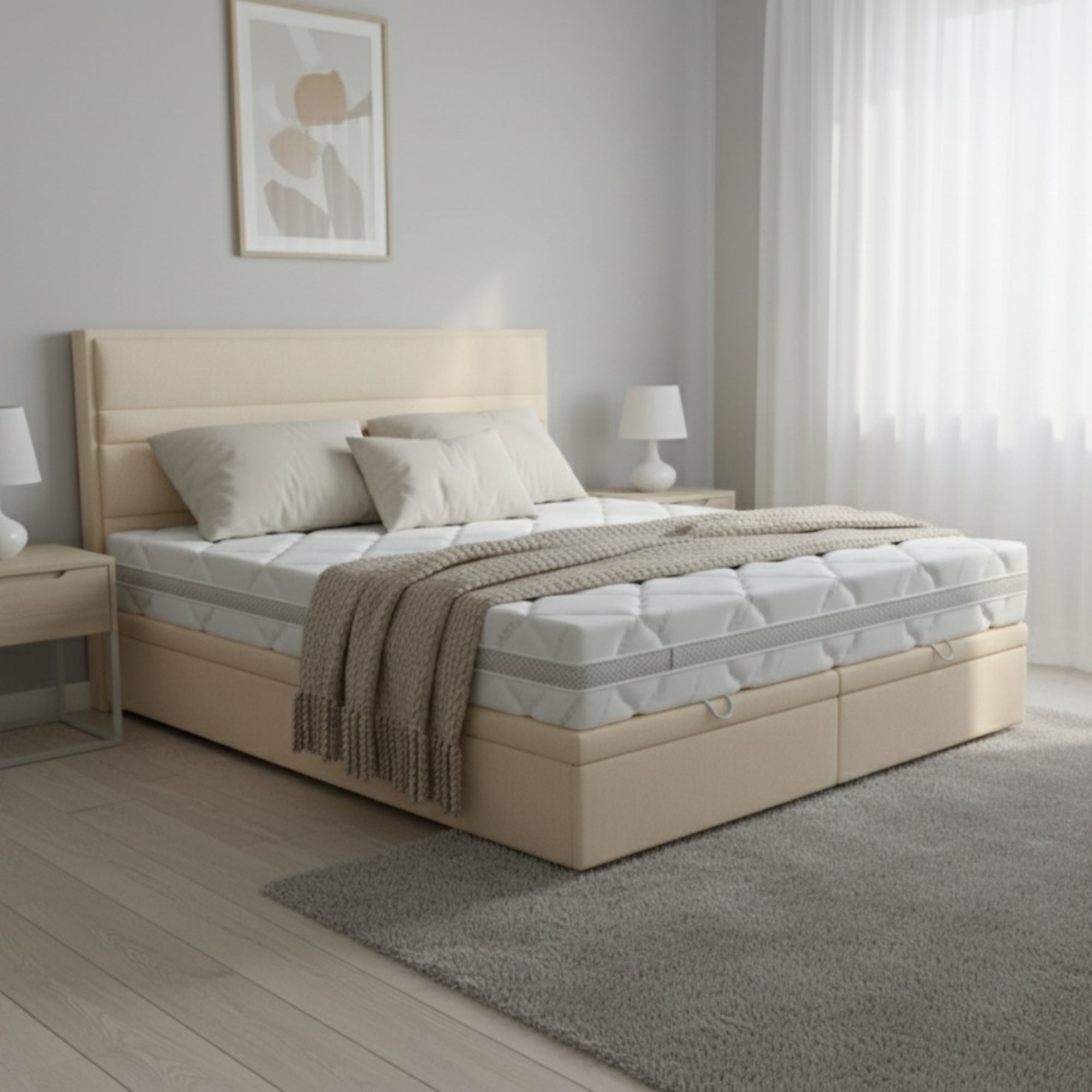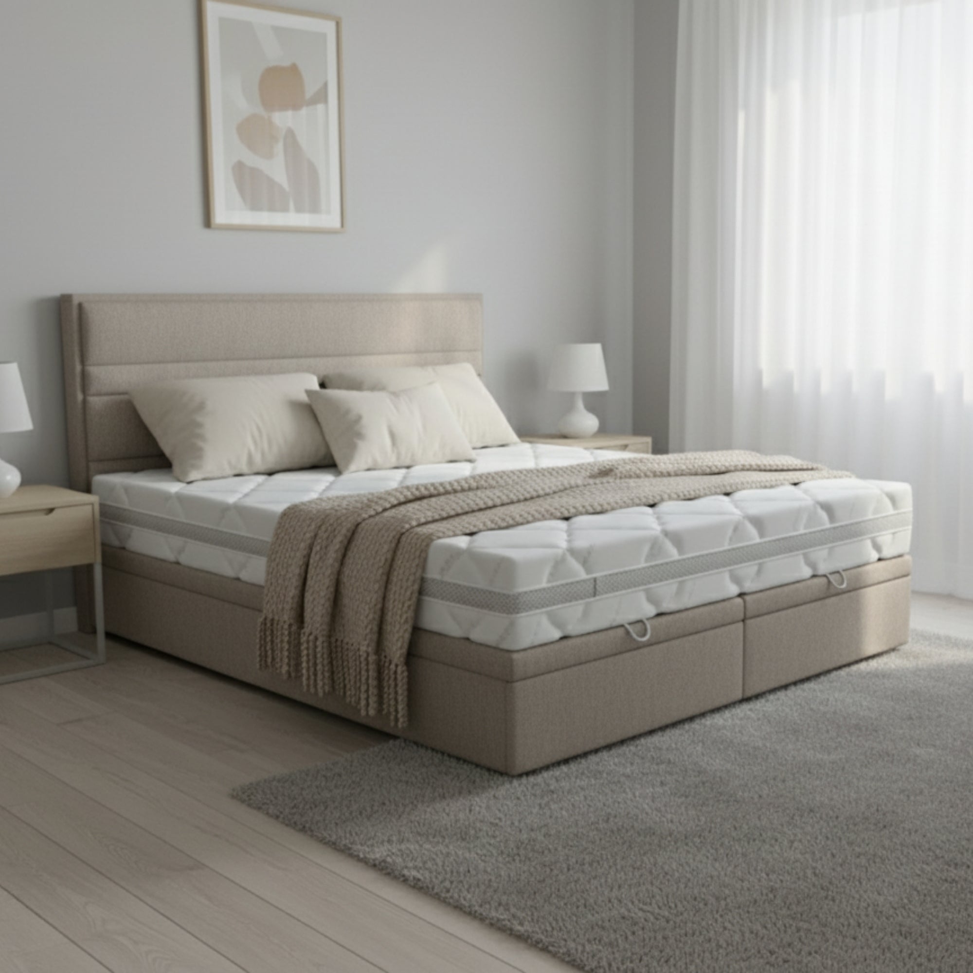 Das Genesis Bett bringt stylische Leichtigkeit in dein Schlafzimmer und passt sich dank anpassbarer Kopfteilhöhe individuell an deinen Wohnstil an. Die weiche Polsterung und klar strukturierte Polsterbahnen machen das elegante Kopfteil zum Blickfang und sorgen für Gemütlichkeit und Rückhalt. Mit dabei ist die hochwertige Cloudy Matratze: Der 7-Zonen-Taschenfederkern unterstützt deinen Körper punktgenau und trägt zu einer gesunden Schlafhaltung bei. Dank antibakteriellem SilverLife Bezug und waschbarer Oberfläche ist Komfort auch für Allergiker garantiert. Das Bett bietet dir flexible Größen, Farben und eine massive, langlebige Konstruktion – für erholsamen Schlaf und zeitlose Optik in jedem Zuhause.