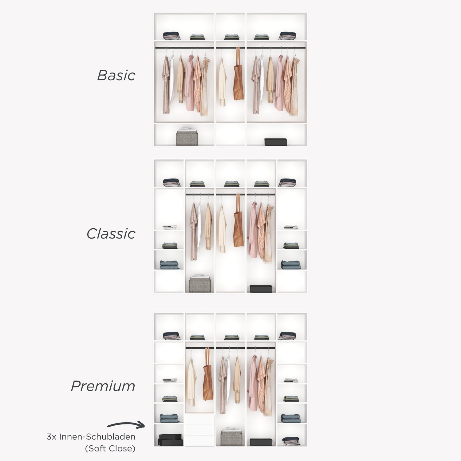 Modularer Drehtürenschrank EMMA – 250 cm Breite - Basic ist auf Lager und wird versandt, sobald es wieder verfügbar ist