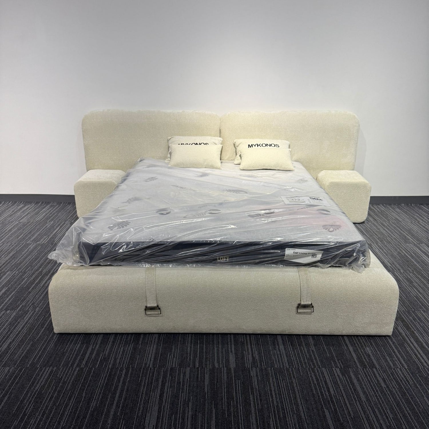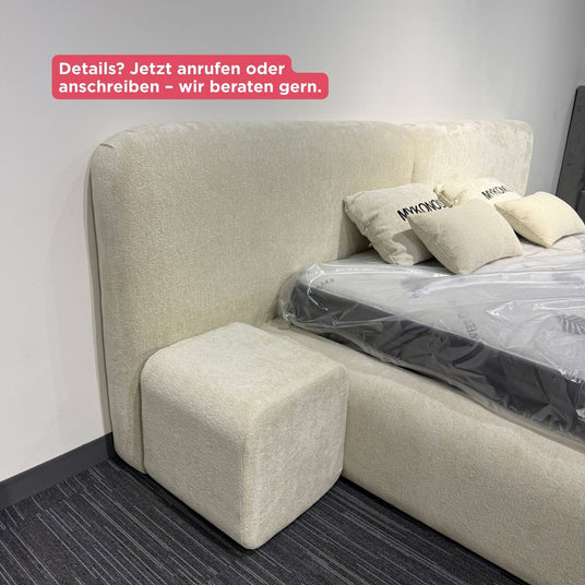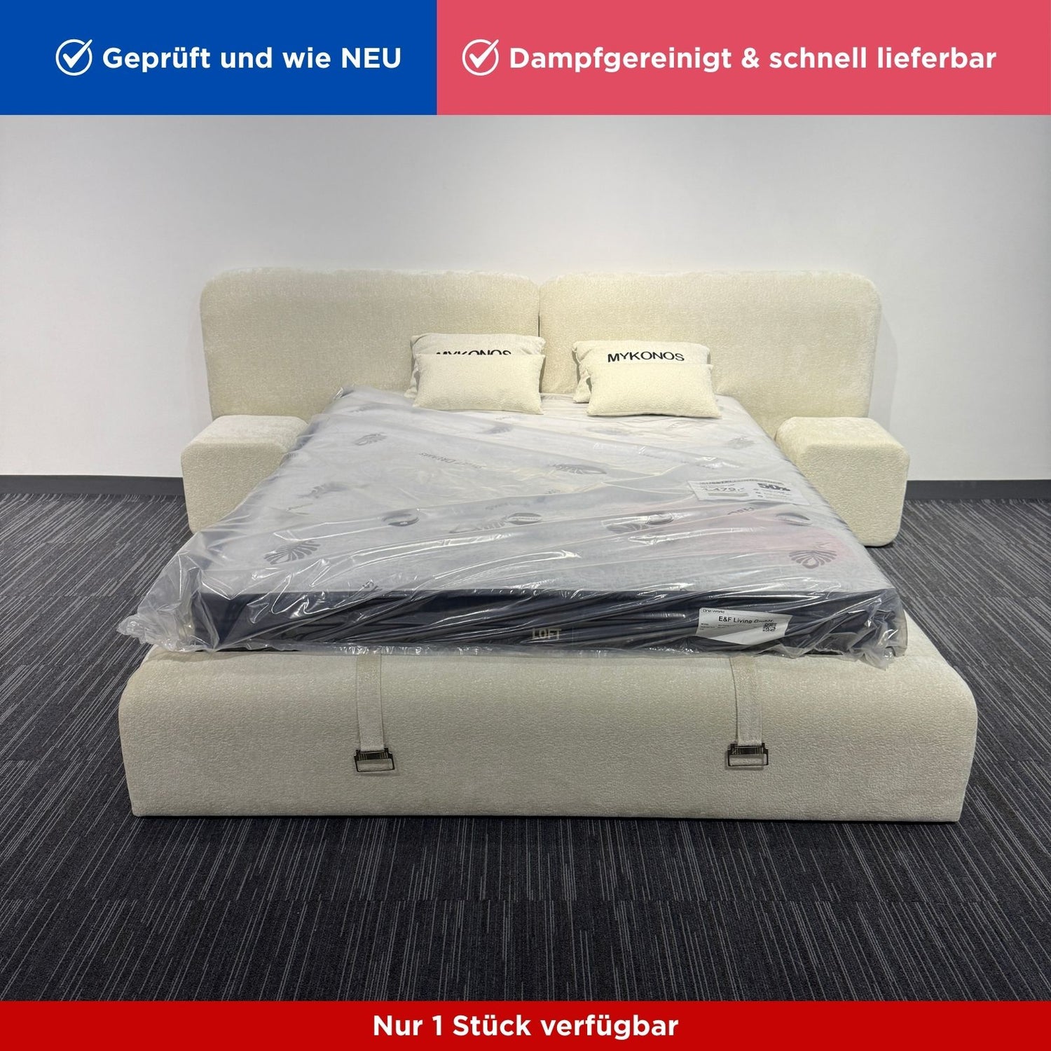 Wie ein Bett aus Wolken: MYCONOS bringt ein fluffig-weiches Design ins Schlafzimmer und schafft ein Gefühl von Leichtigkeit und Geborgenheit. Der komplett bodennahe Rahmen verstärkt das volle, weiche Erscheinungsbild. Die zwei im Design perfekt abgestimmten Nachttische machen das Set komplett. Mit großem Stauraum und stabilem Lattenrost ist MYCONOS nicht nur wunderschön, sondern auch alltagstauglich und praktisch – ideal für dein modernes Schlafzimmer.