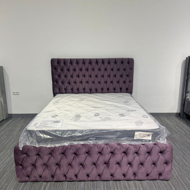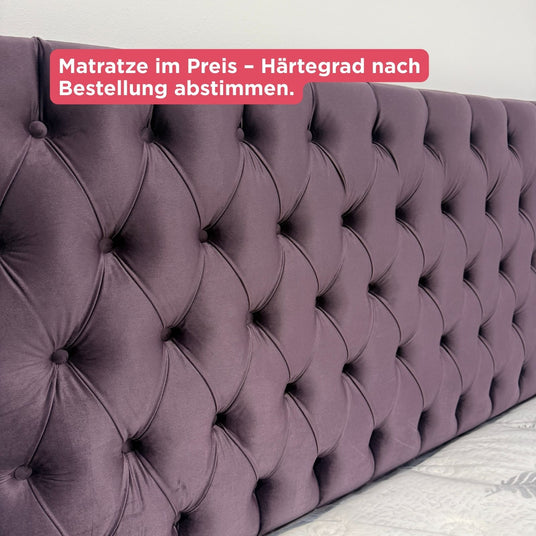 ROMA kombiniert edles Design mit maximaler Funktion. Der tiefviolette Farbton Royal Amethyst schafft eine luxuriöse Atmosphäre im Schlafzimmer, während das rundum gearbeitete Castefield-Muster dem Bett einen unverwechselbaren Premium-Look verleiht. Da ROMA bodennah konstruiert ist, entsteht ein ruhiges Erscheinungsbild, und gleichzeitig entfällt jede Reinigung unter dem Bett.
