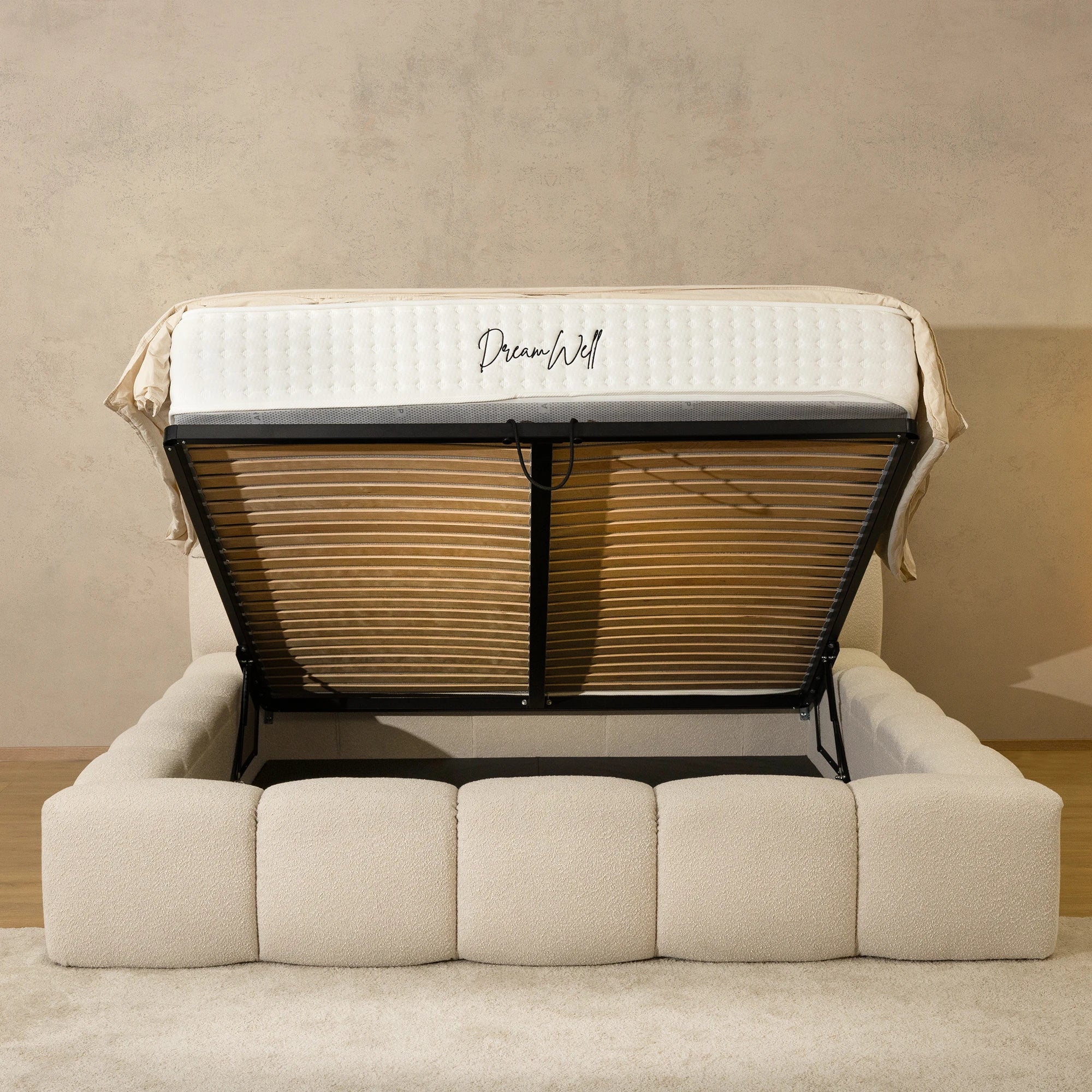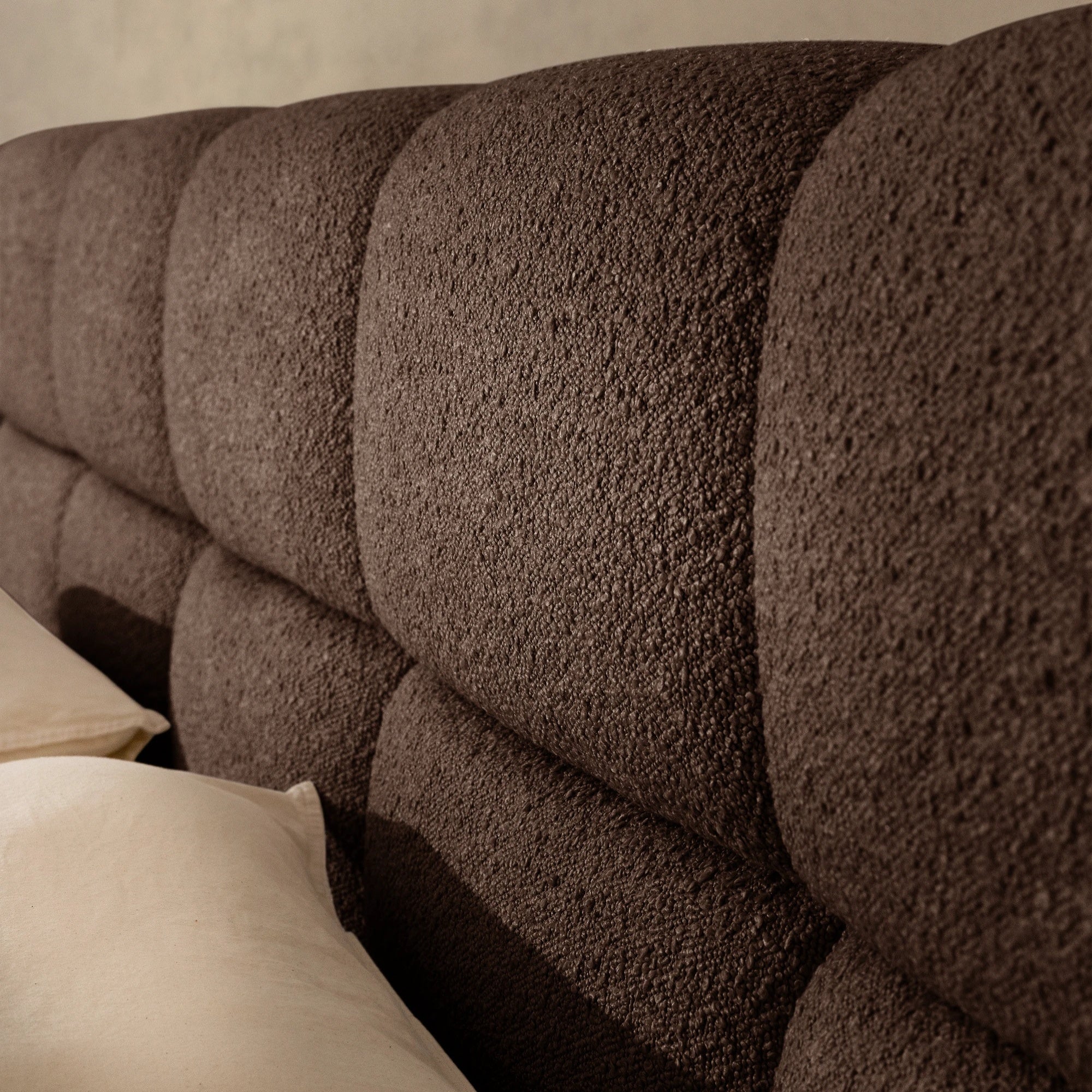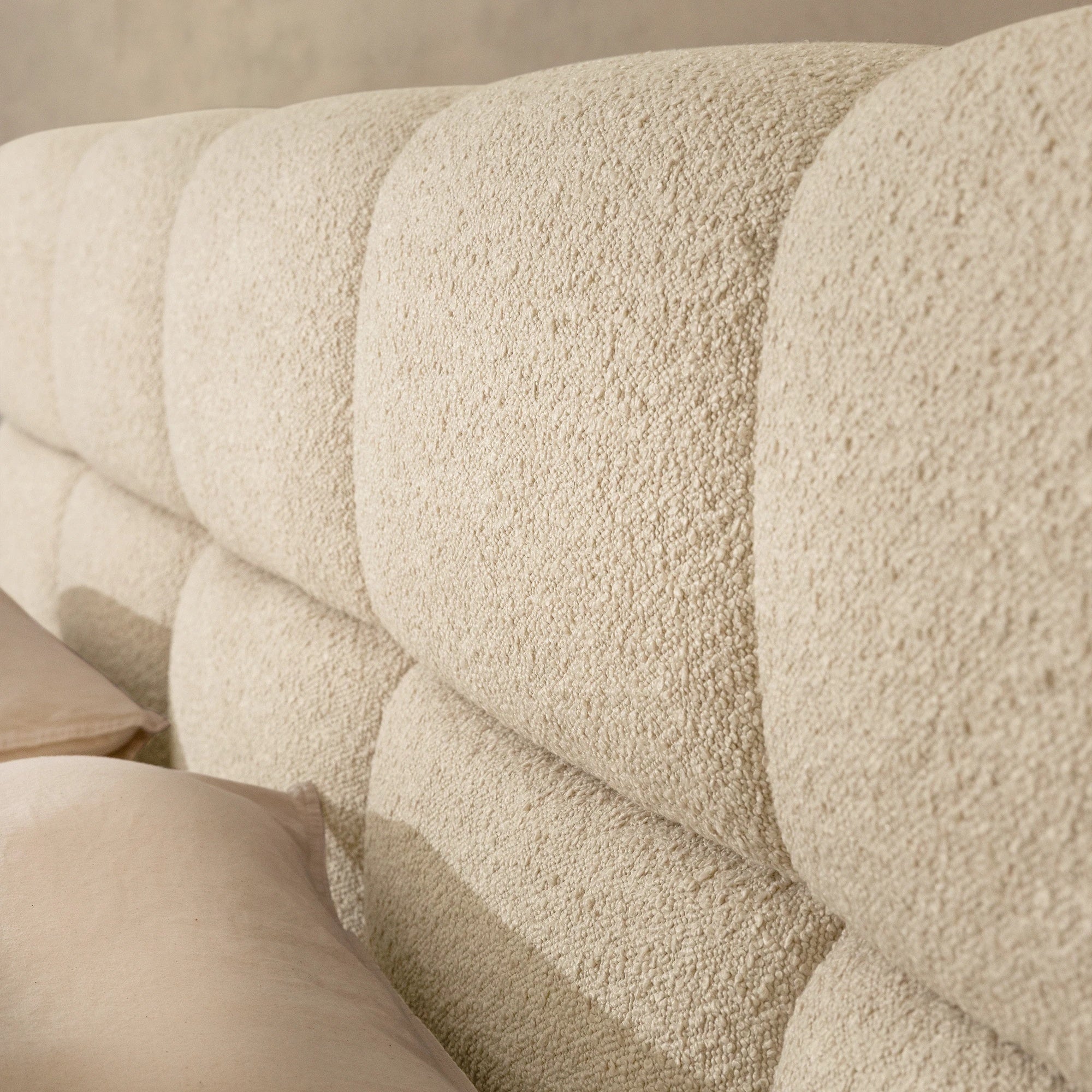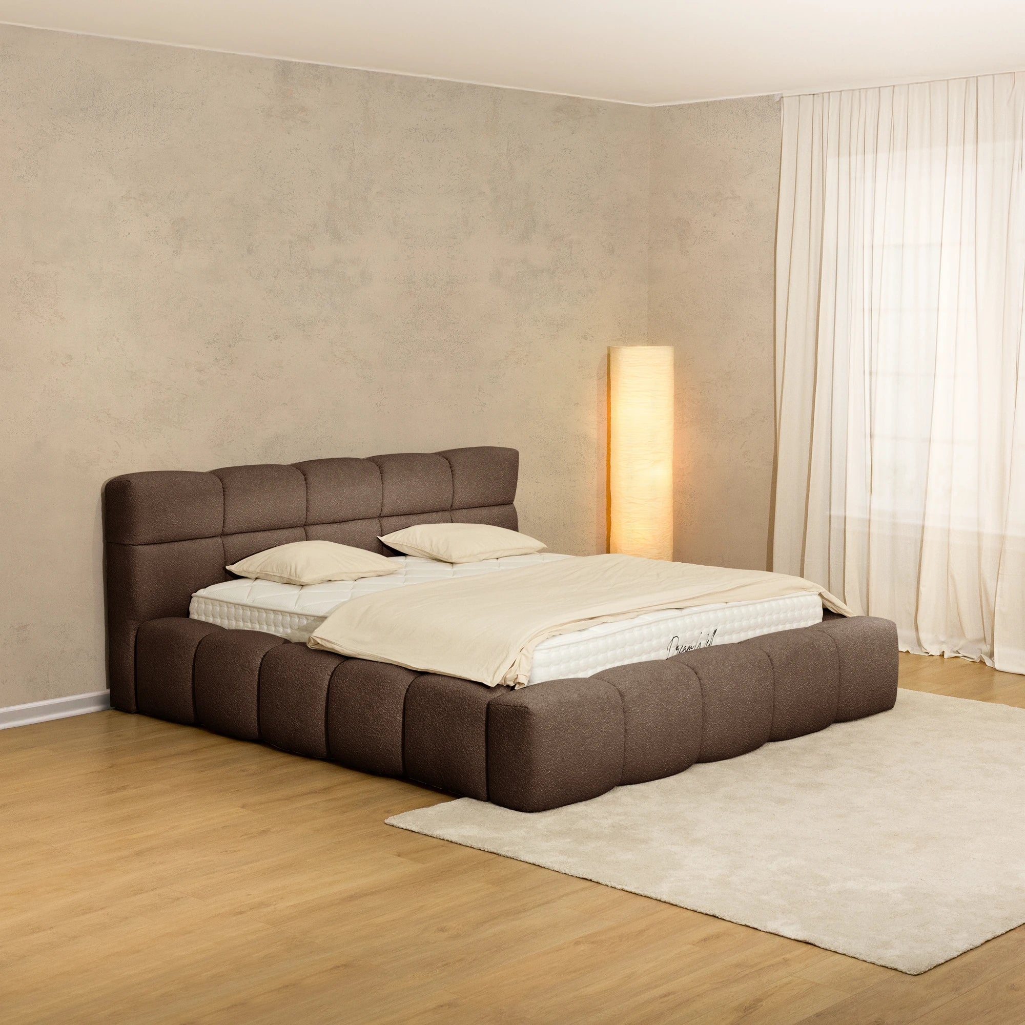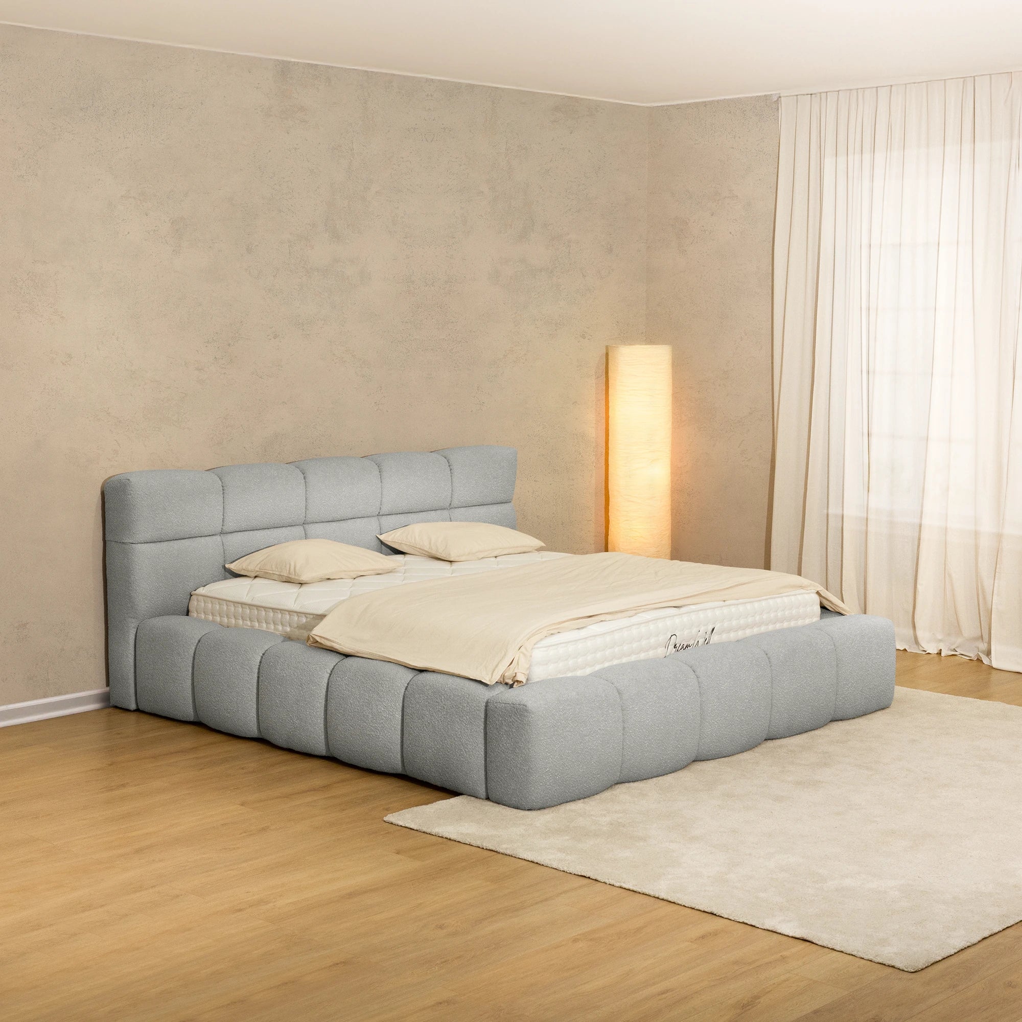 Stell dir vor, wie du in dein Bett sinkst – nicht in irgendein Bett, sondern in BALOO. Ein durchgehend gepolstertes Statement, das mehr an ein riesiges Loungemöbel erinnert als an klassische Bettgestelle. Weich gerundete Kanten, großzügige Polsterelemente und eine klare, geometrische Formsprache machen BALOO zu einem Ort des Einkuschelns wie auch des bewussten Wohnens. Nichts Hartes, nichts Kaltes – nur Stoff, Polster, Geborgenheit. Besonders raffiniert: Unter der Liegefläche verbirgt sich ein großzügiger Stauraum mit stabiler Hebefunktion. Der Lattenrost mit Metallrahmen lässt sich mühelos anheben – so verschwinden Decken, Kissen oder Winterkleidung, ohne den ruhigen Look zu stören. BALOO ist dein Ort für Klarheit und Komfort – außen weich, innen funktional.