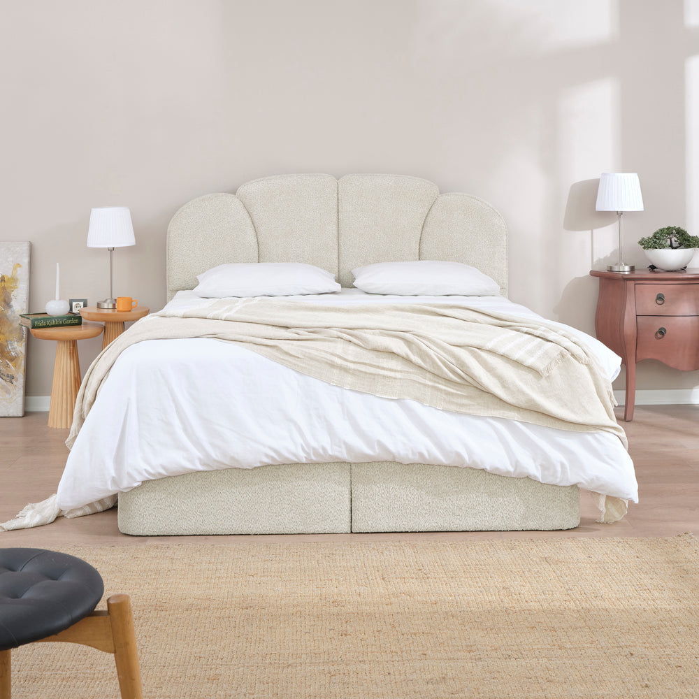 Posteľ JASMIN so svojimi organickými líniami prináša do spálne pokojný a ženský estetický vzhľad. Mäkká buklé látka v svetlokrémovej farbe lichotí miestnosti a premieňa posteľ na útulné útočisko so sofistikovaným dizajnom. Vďaka veľkorysému úložnému priestoru zostane vaša spálňa uprataná – bez toho, aby ste obetovali štýl.