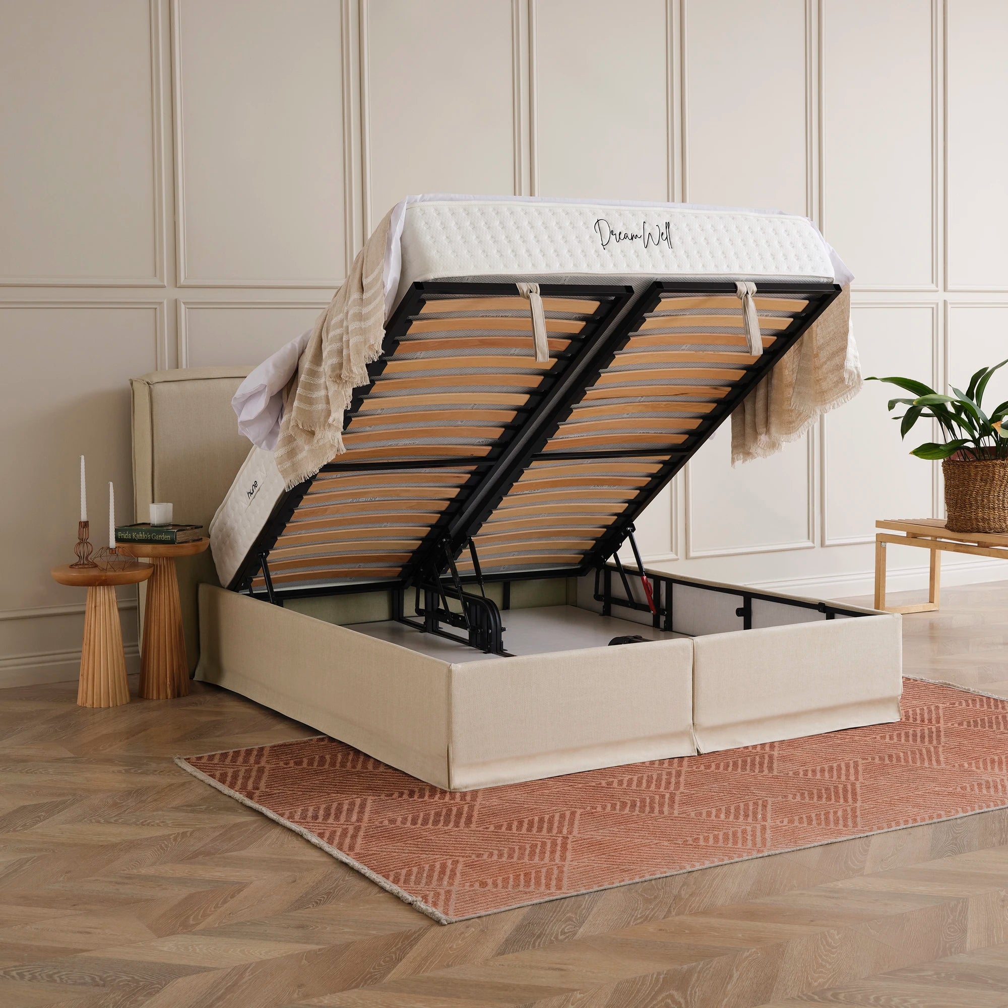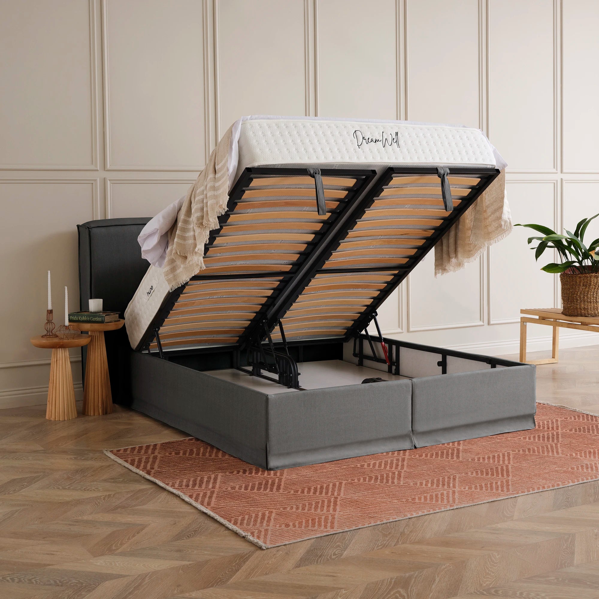 Posteľ Manchester s úložným priestorom od Hane® kombinuje elegantný dizajn s praktickou funkčnosťou. Dvojdielne čelo s čistými líniami a decentným šarmom vytvára modernú eleganciu, zatiaľ čo veľkorysá zásuvka s robustným zdvíhacím mechanizmom ponúka ideálny úložný priestor. K dispozícii v krémovej, svetlosivej a tmavosivej farbe sa perfektne hodí do každej spálne.