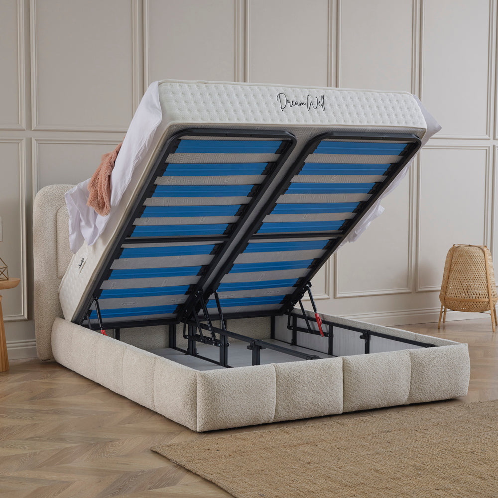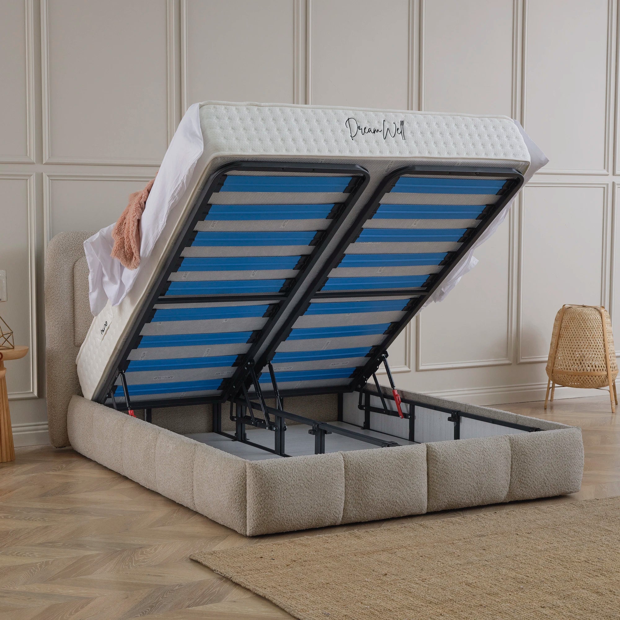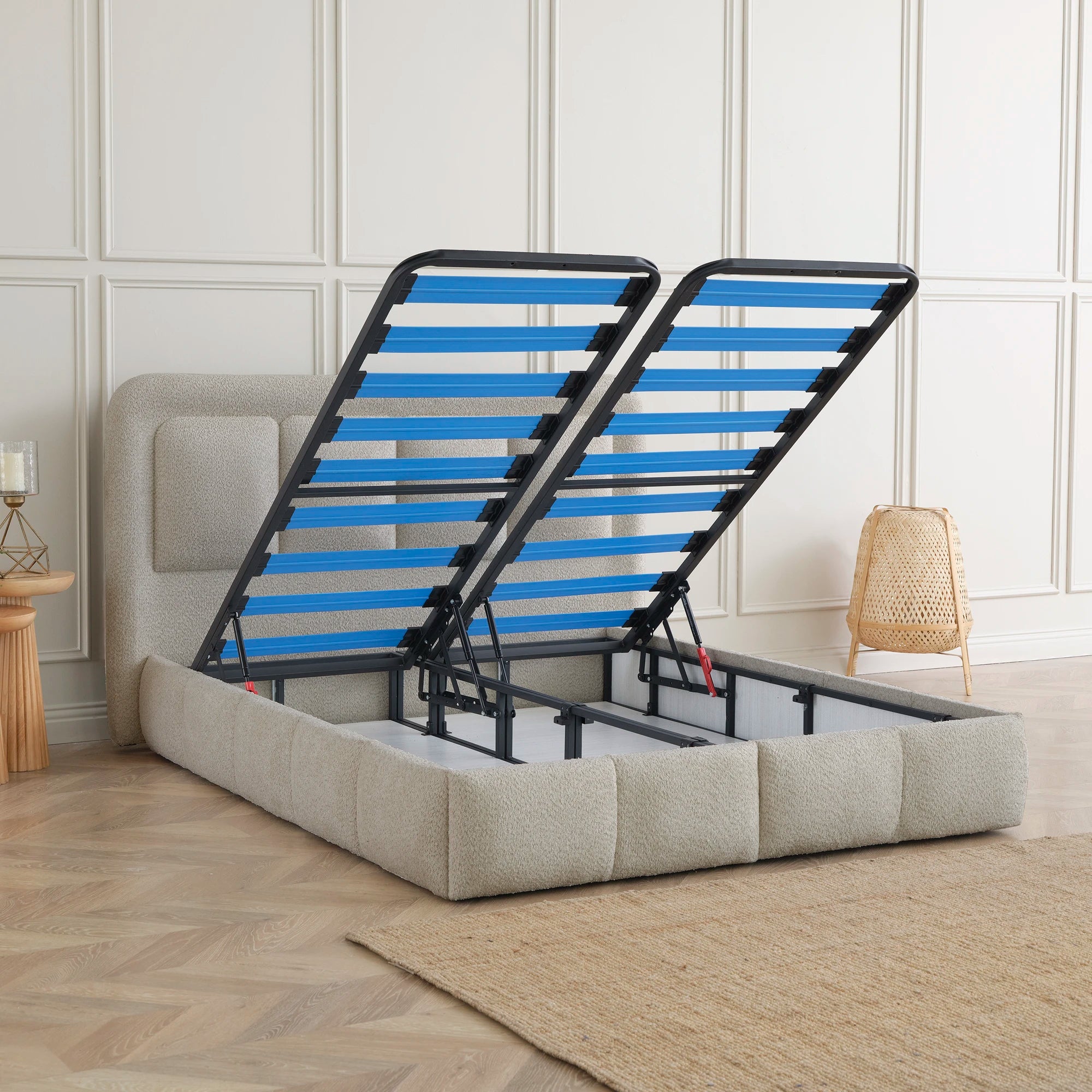 Úložná posteľ OTTO od Hane® kombinuje plynulý dizajn so sofistikovanou funkčnosťou. Mäkká látka s plyšovým buklé prináša do vašej spálne teplo a štýl, zatiaľ čo plne polstrovaný dizajn so zaoblenými hranami zaisťuje maximálne pohodlie. Pod posteľou na vás čaká veľkorysý úložný priestor, ktorý sa dá ľahko otvoriť pomocou nového laminátového lamelového roštu s pohodlnou rukoväťou. OTTO je ideálna pre vás, ak hľadáte pohodlie, dizajn a každodennú praktickosť v modernej posteli.