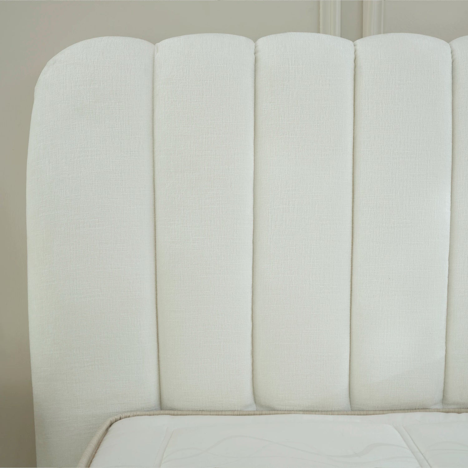 - Das hohe, vertikal gepolsterte Kopfteil sorgt für eine moderne, ruhige Optik.