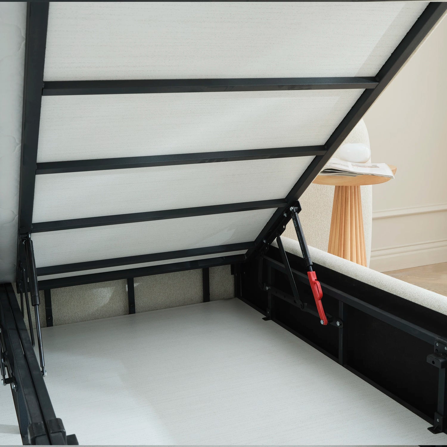 Designer Polsterbett ZENA Teddy-Boucle mit Stauraum - Creme / 140x200 je na sklade a bude odoslaný hneď, ako bude opäť k dispozícii